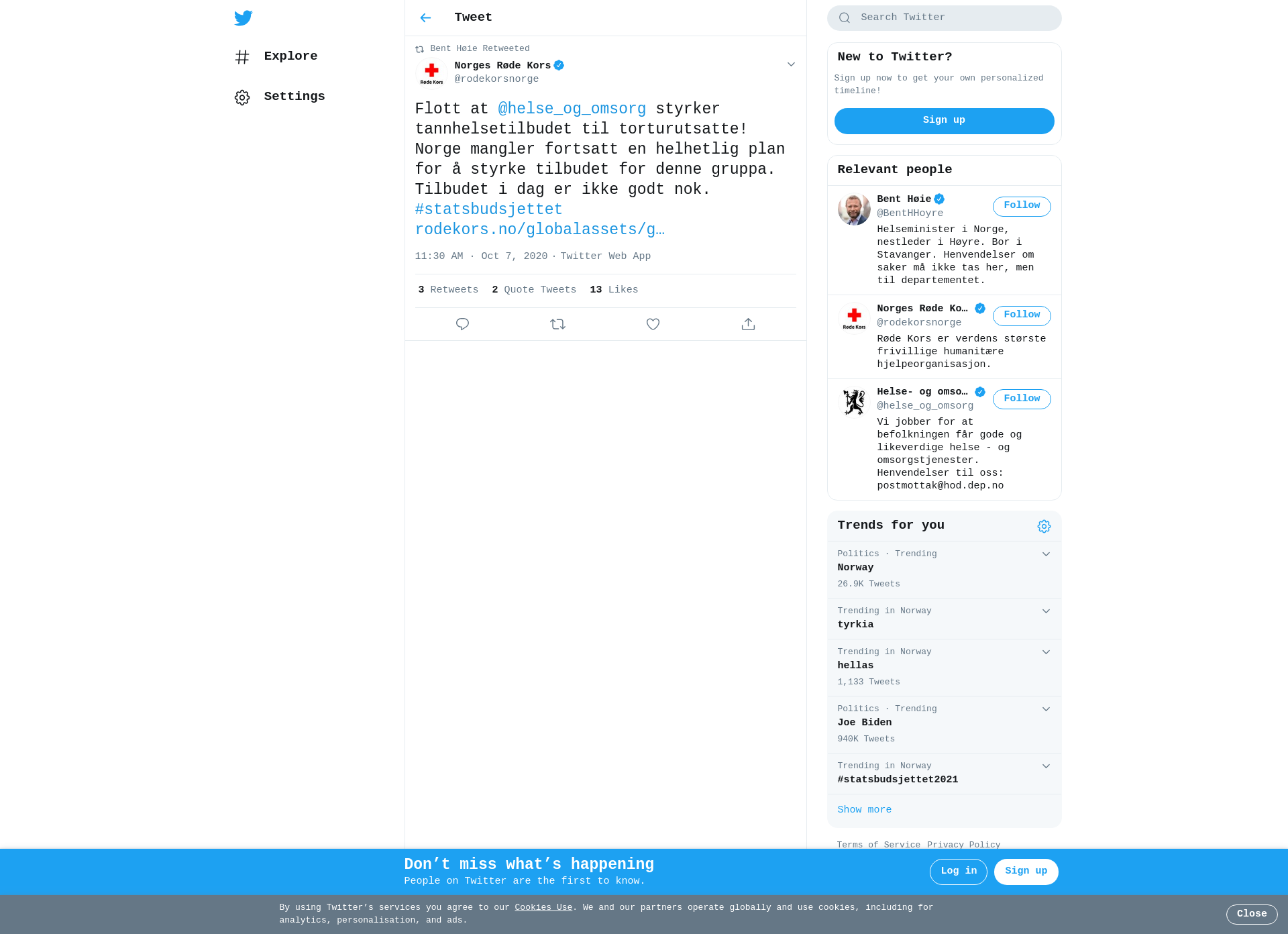 RT @rodekorsnorge: Flott at @helse_og_omsorg styrker tannhelsetilbudet til torturutsatte! Norge mangler fortsatt en helhetlig plan for å styrke tilbudet for denne gruppa. Tilbudet i dag er ikke godt nok. #statsbudsjettet https://t.co/wsIqcHsLQi