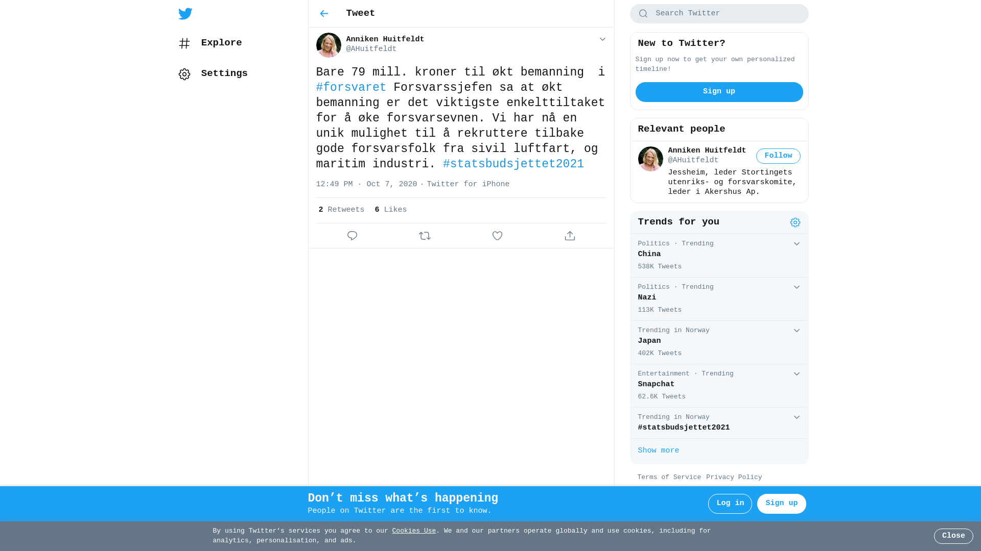 Bare 79 mill. kroner til økt bemanning i #forsvaret Forsvarssjefen sa at økt bemanning er det viktigste enkelttiltaket for å øke forsvarsevnen. Vi har nå en unik mulighet til å rekruttere tilbake gode forsvarsfolk fra sivil luftfart, og maritim industri. #statsbudsjettet2021
