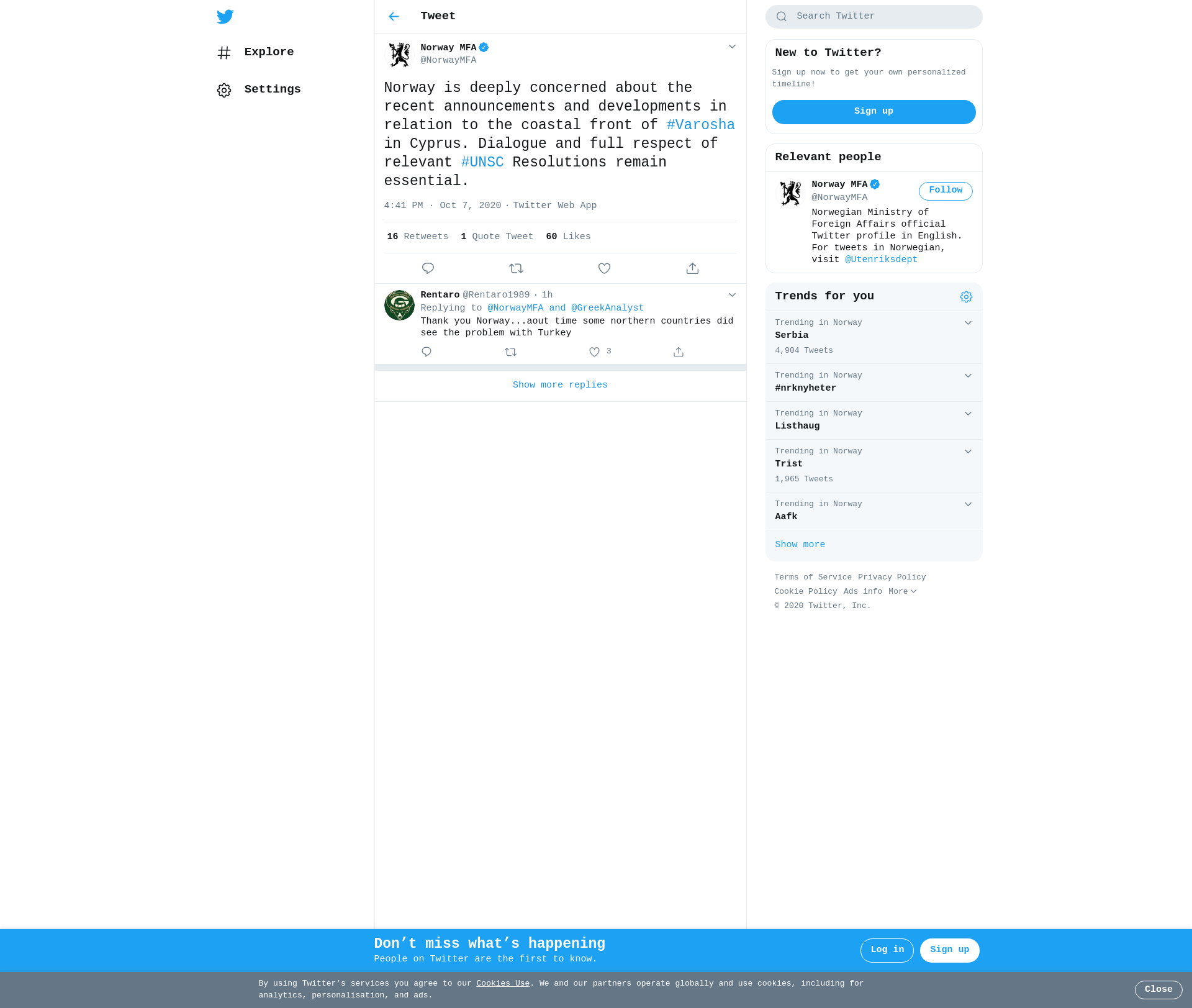 Norway is deeply concerned about the recent announcements and developments in relation to the coastal front of #Varosha in Cyprus. Dialogue and full respect of relevant #UNSC Resolutions remain essential.