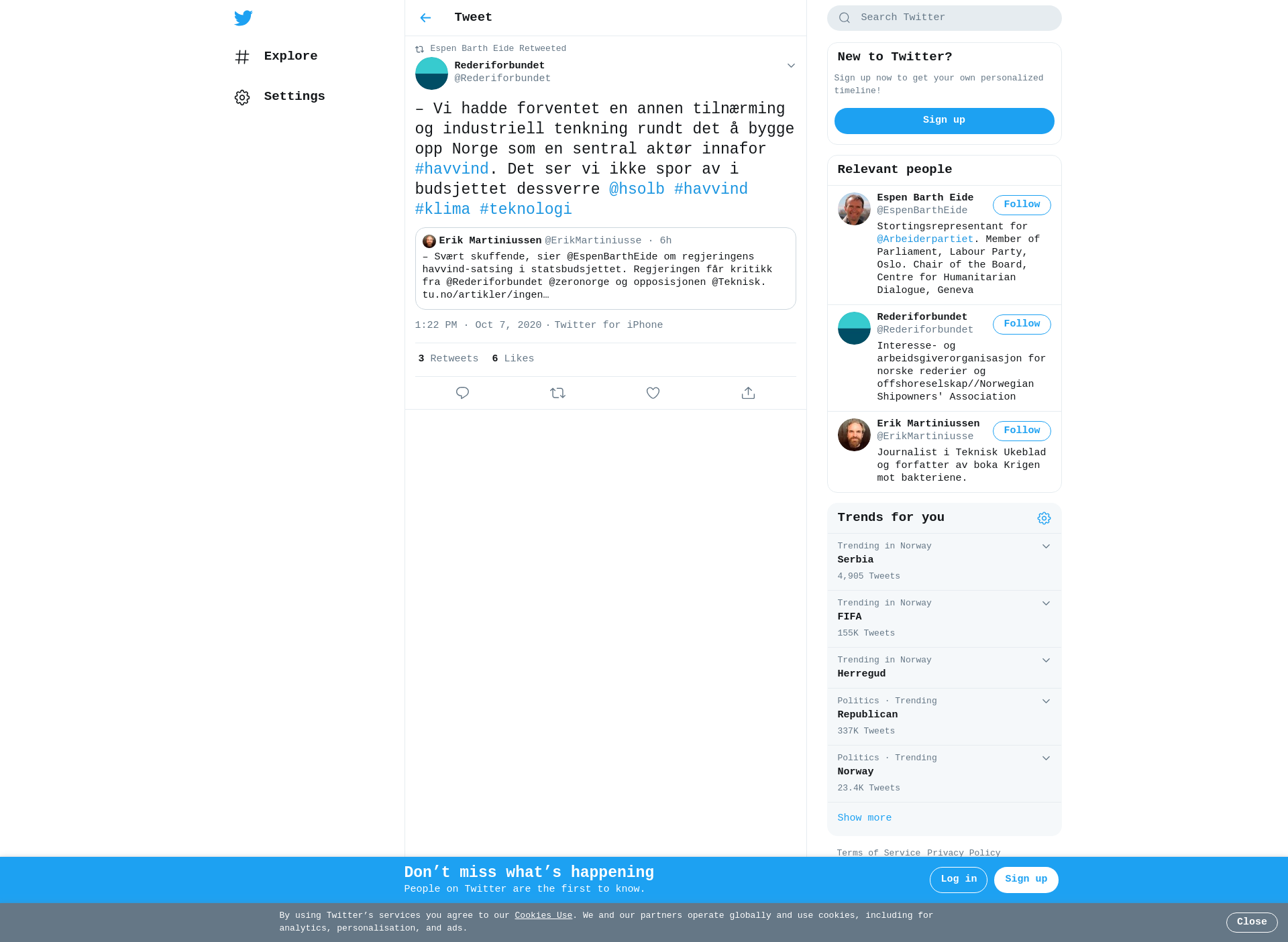 RT @Rederiforbundet: – Vi hadde forventet en annen tilnærming og industriell tenkning rundt det å bygge opp Norge som en sentral aktør innafor #havvind. Det ser vi ikke spor av i budsjettet dessverre @hsolb #havvind #klima #teknologi