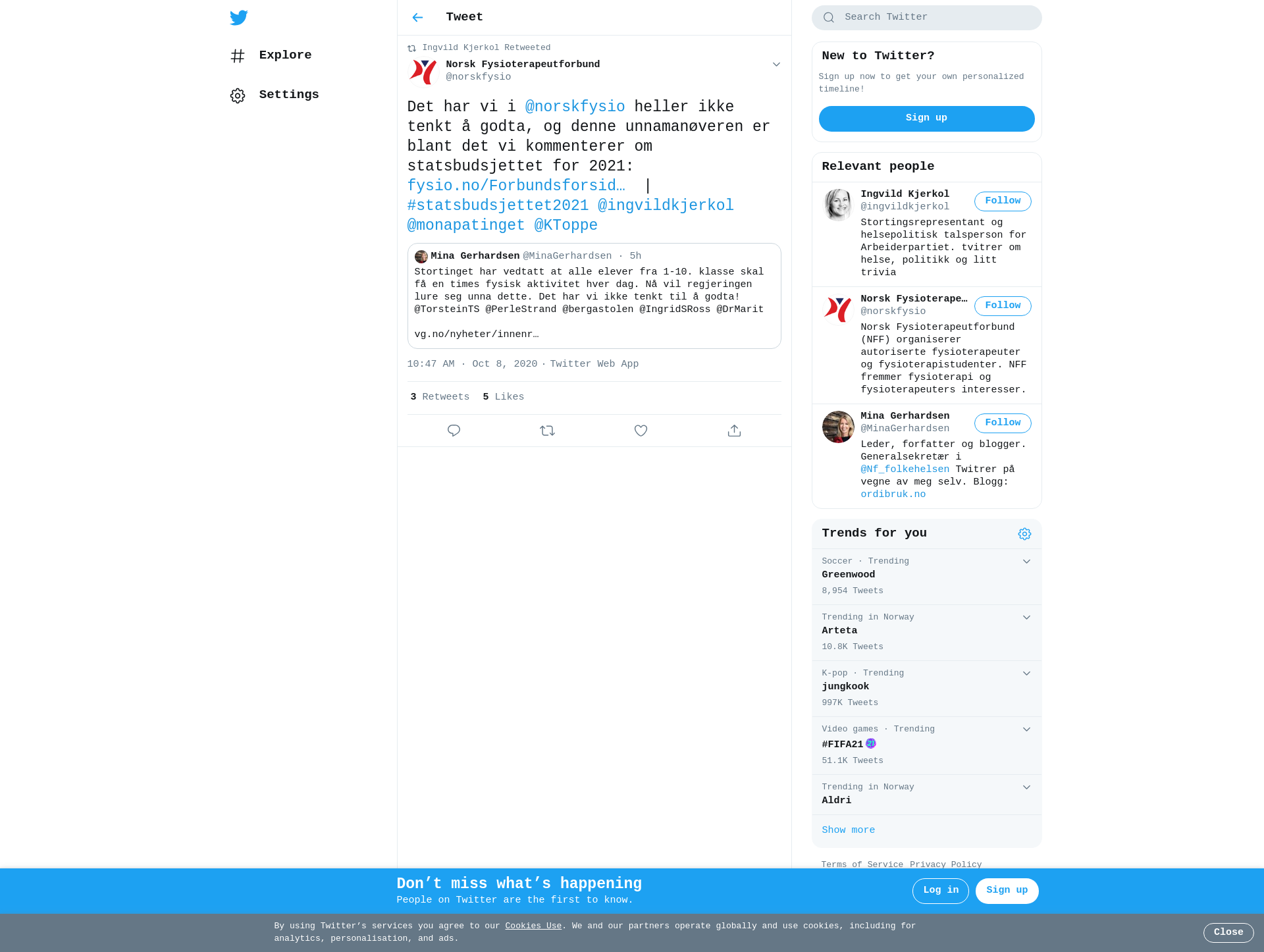 RT @norskfysio: Det har vi i @norskfysio heller ikke tenkt å godta, og denne unnamanøveren er blant det vi kommenterer om statsbudsjettet for 2021: https://t.co/YPxlGMpKPL  |  #statsbudsjettet2021 @ingvildkjerkol @monapatinget @KToppe
