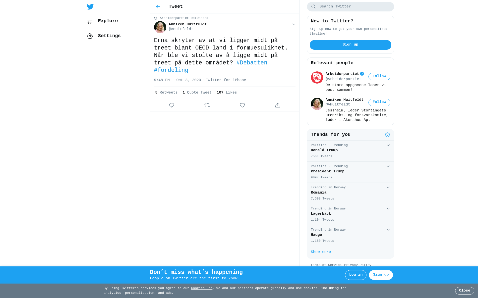 RT @AHuitfeldt: Erna skryter av at vi ligger midt på treet blant OECD-land i formuesulikhet. Når ble vi stolte av å ligge midt på treet på dette området? #Debatten #fordeling