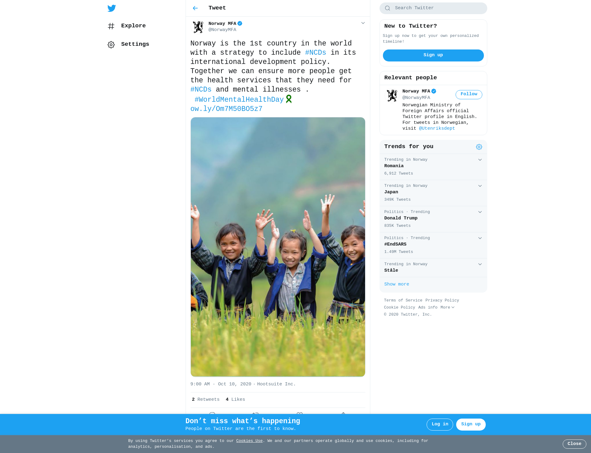 Norway is the 1st country in the world with a strategy to include #NCDs in its international development policy. Together we can ensure more people get the health services that they need for #NCDs and mental illnesses .