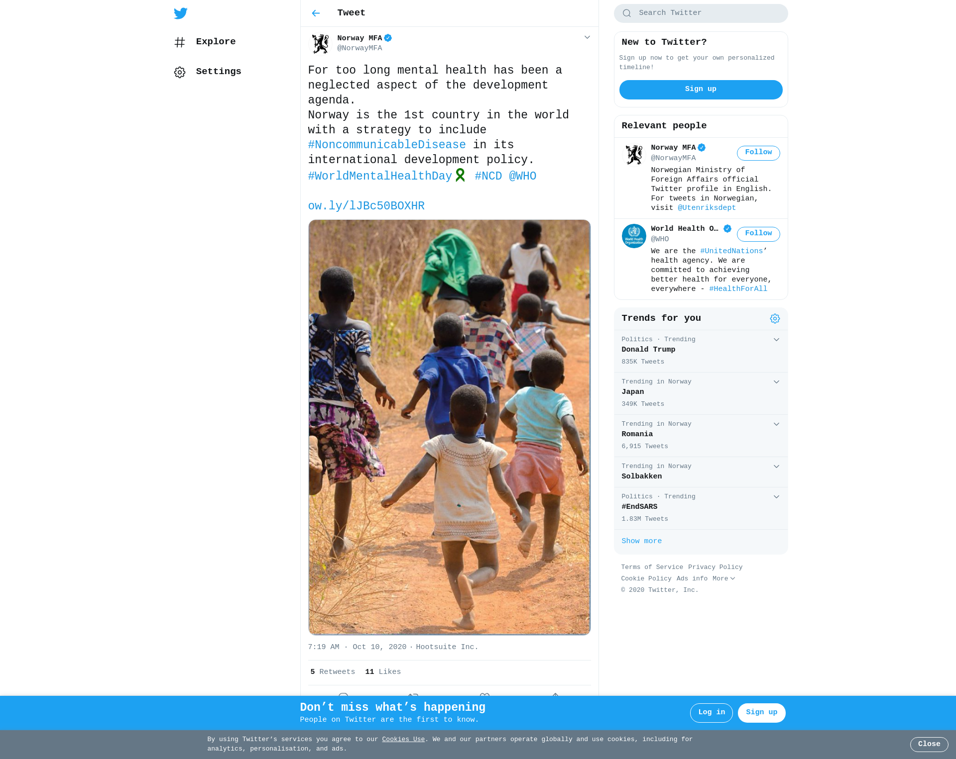 Norway is the 1st country in the world with a strategy to include #NoncommunicableDisease in its international development policy. #WorldMentalHealthDay #NCD @WHO