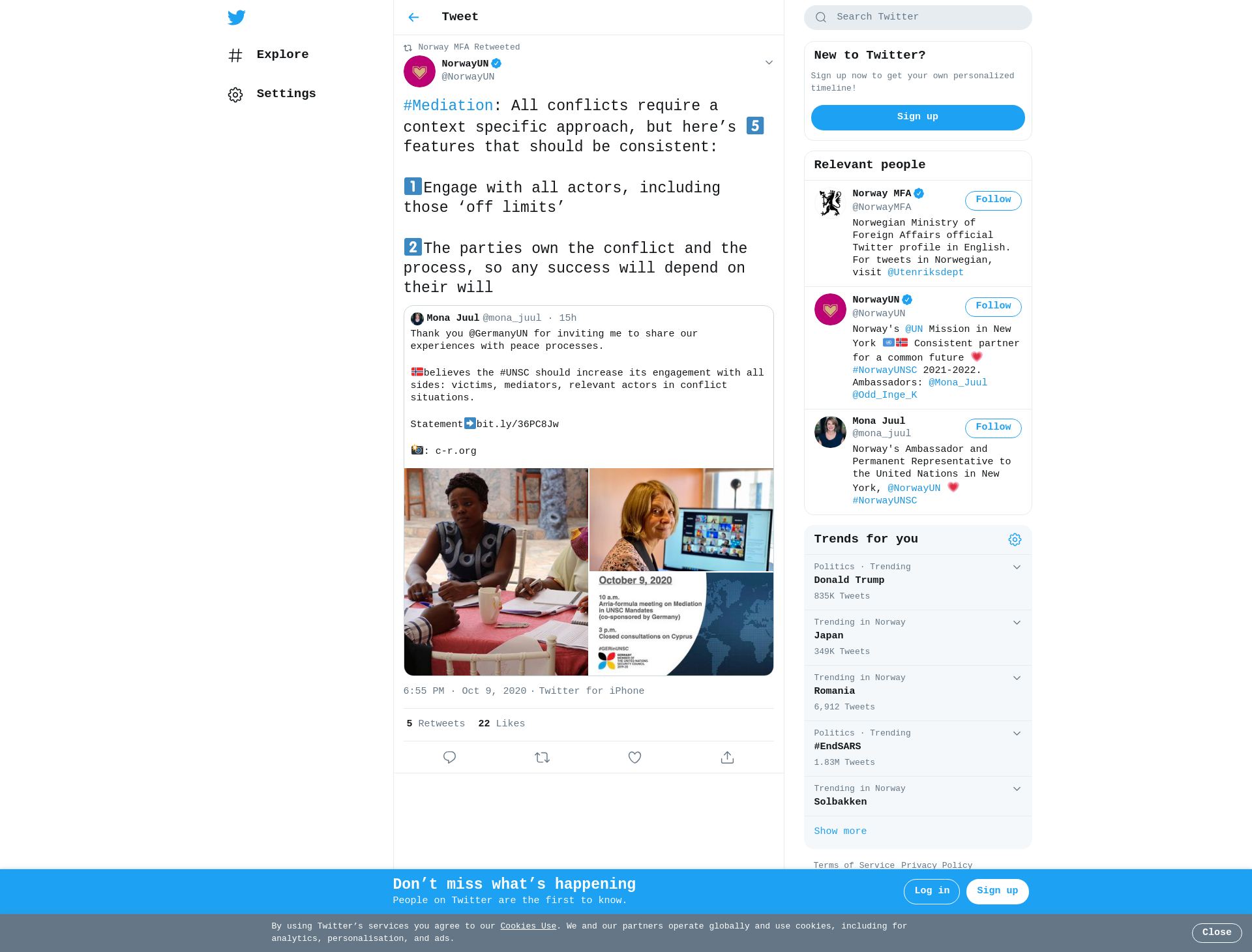 RT @NorwayUN: #Mediation: All conflicts require a context specific approach, but here’s 5️⃣ features that should be consistent: 1️⃣Engage…