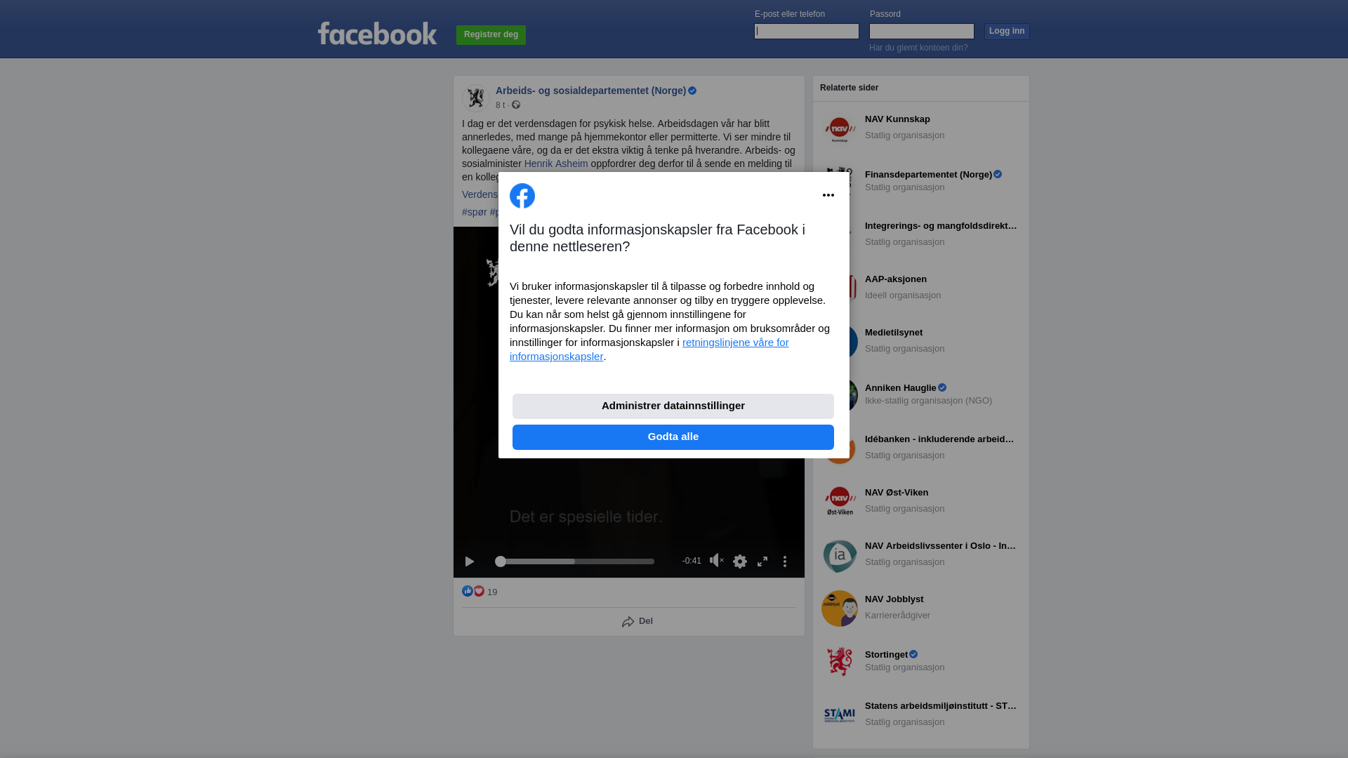 I dag er det verdensdagen for psykisk helse. Arbeidsdagen vår har blitt annerledes, med mange på hjemmekontor eller permitterte. Vi ser mindre til kollegaene våre, og da er det ekstra viktig å tenke på hverandre. Arbeids- og sosialminister Henrik Asheim oppfordrer deg derfor til å sende en melding til en kollega for å høre hvordan det går.