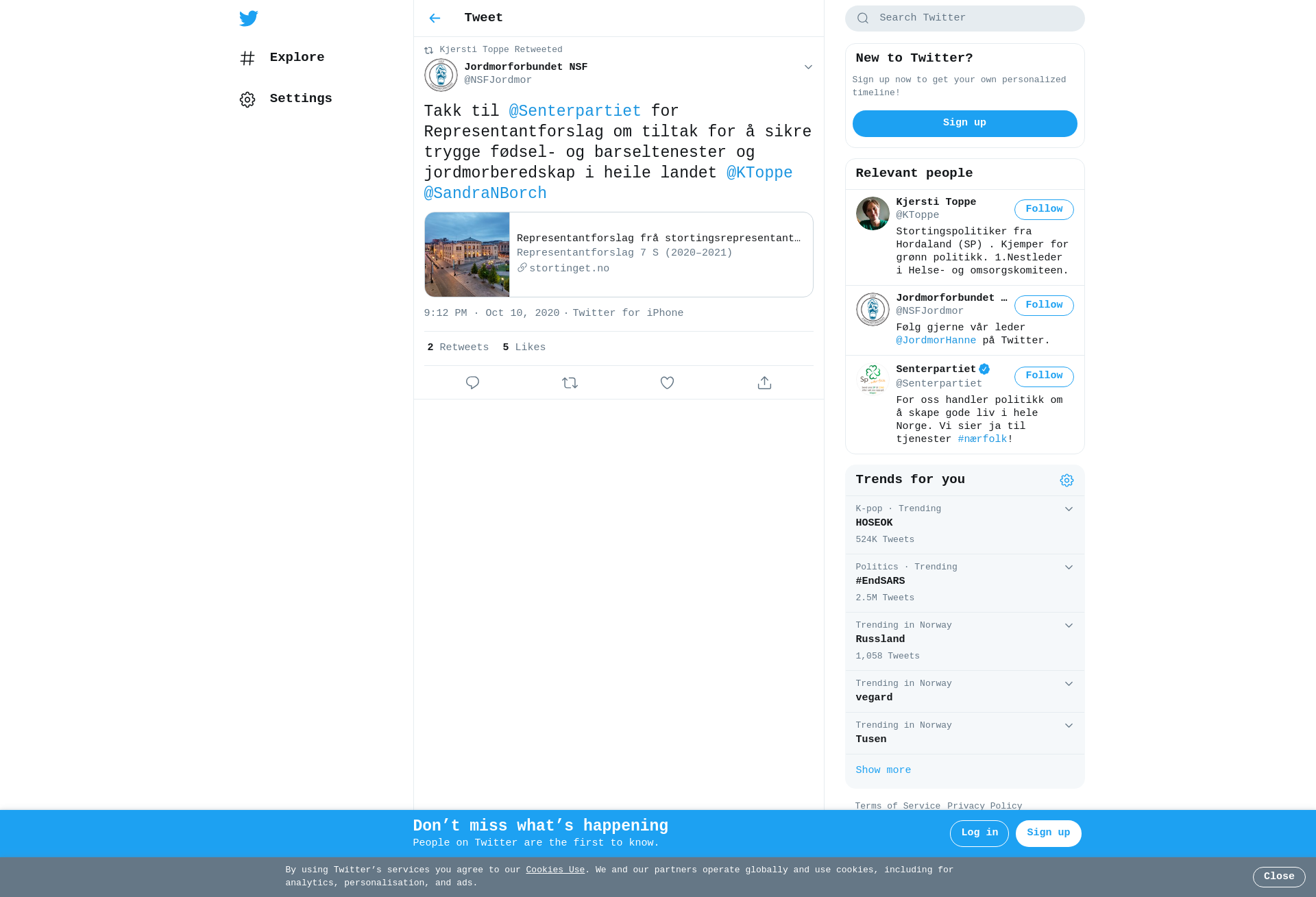 RT @NSFJordmor: Takk til @Senterpartiet for Representantforslag om tiltak for å sikre trygge fødsel- og barseltenester og jordmorberedskap i heile landet @KToppe @SandraNBorch https://t.co/O12p15z8sk