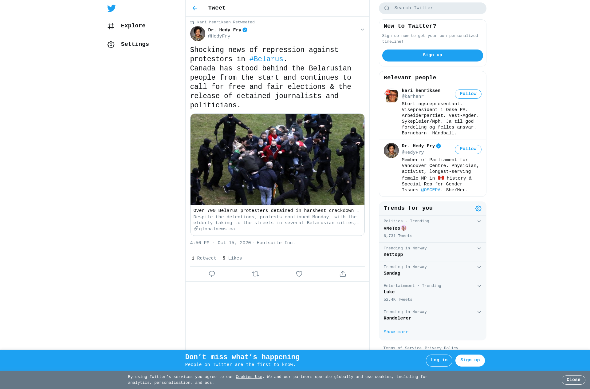 RT @HedyFry: Shocking news of repression against protestors in #Belarus. Canada has stood behind the Belarusian people from the start and…