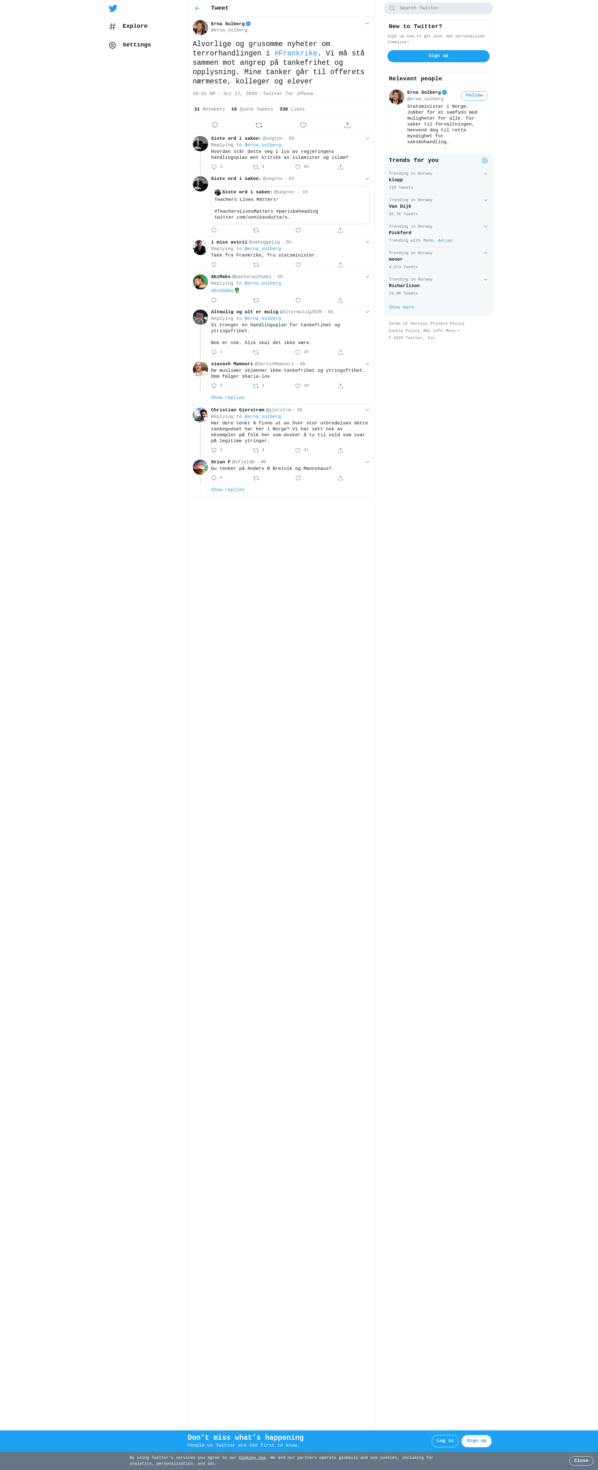 Alvorlige og grusomme nyheter om terrorhandlingen i #Frankrike. Vi må stå sammen mot angrep på tankefrihet og opplysning. Mine tanker går til offerets nærmeste, kolleger og elever