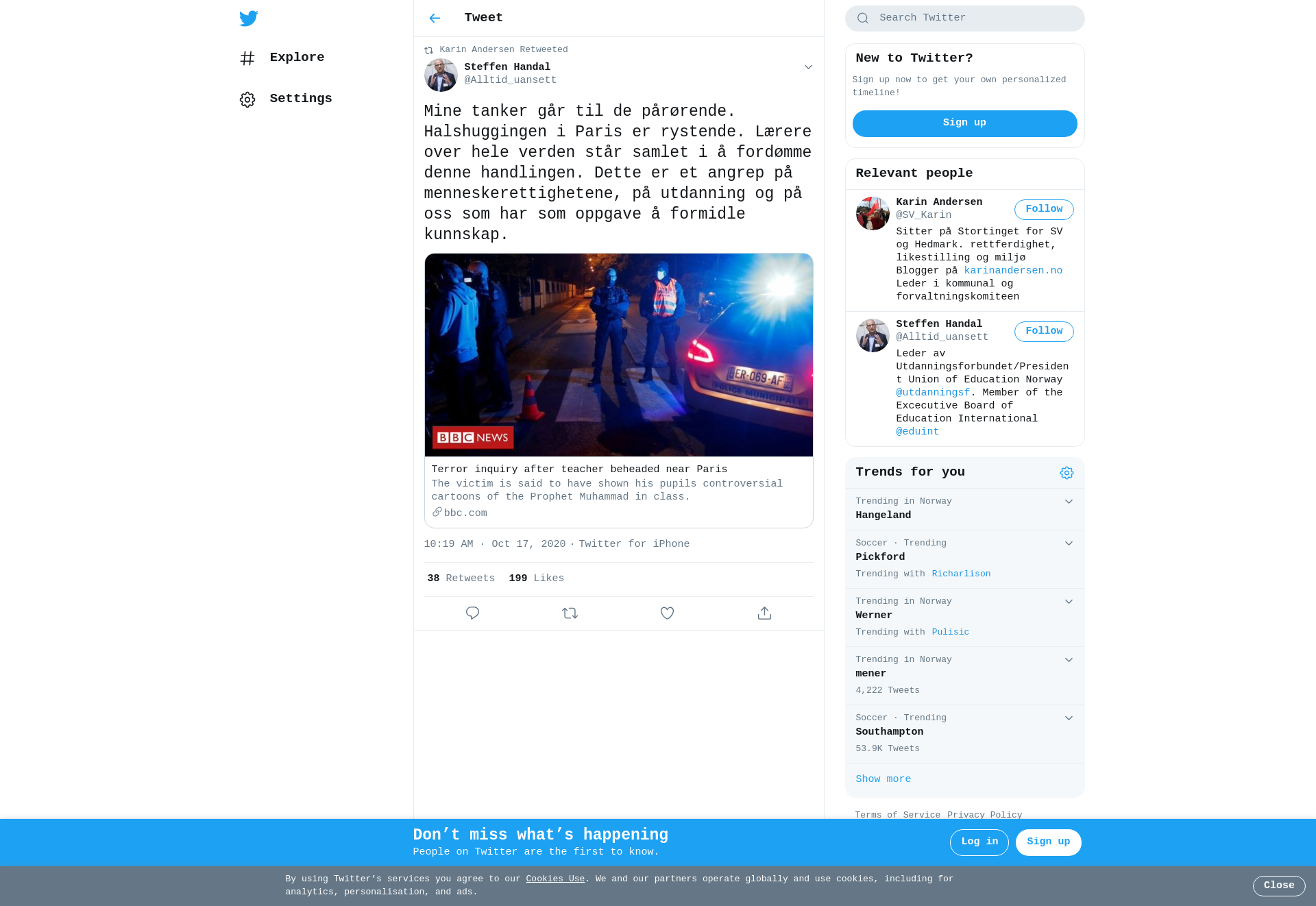 RT @Alltid_uansett: Mine tanker går til de pårørende. Halshuggingen i Paris er rystende. Lærere over hele verden står samlet i å fordømme…