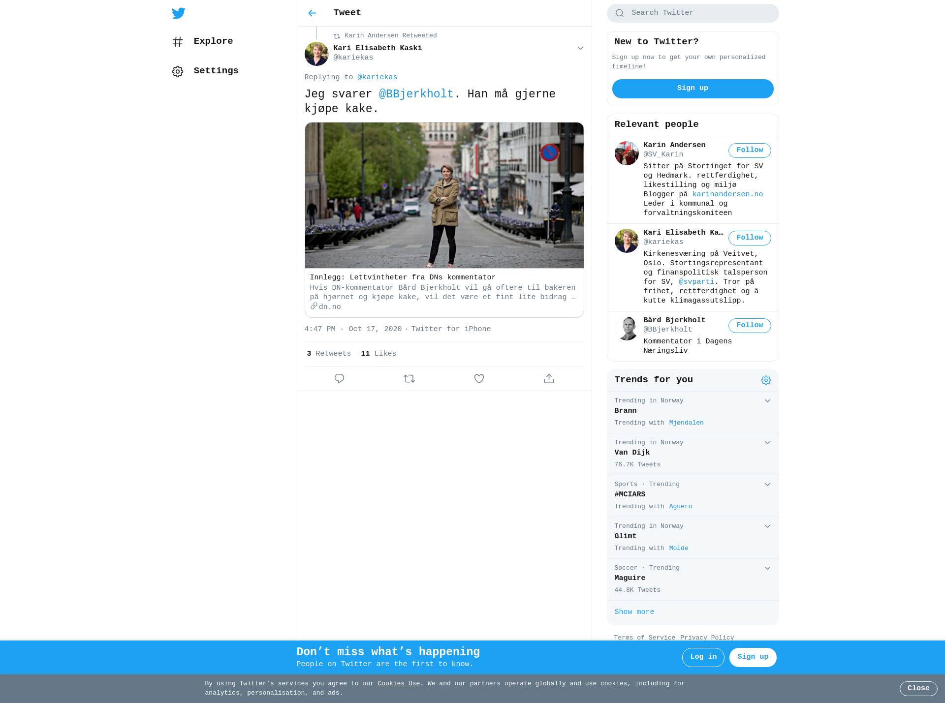 RT @kariekas: Jeg svarer @BBjerkholt. Han må gjerne kjøpe kake. https://t.co/uizsORXbut