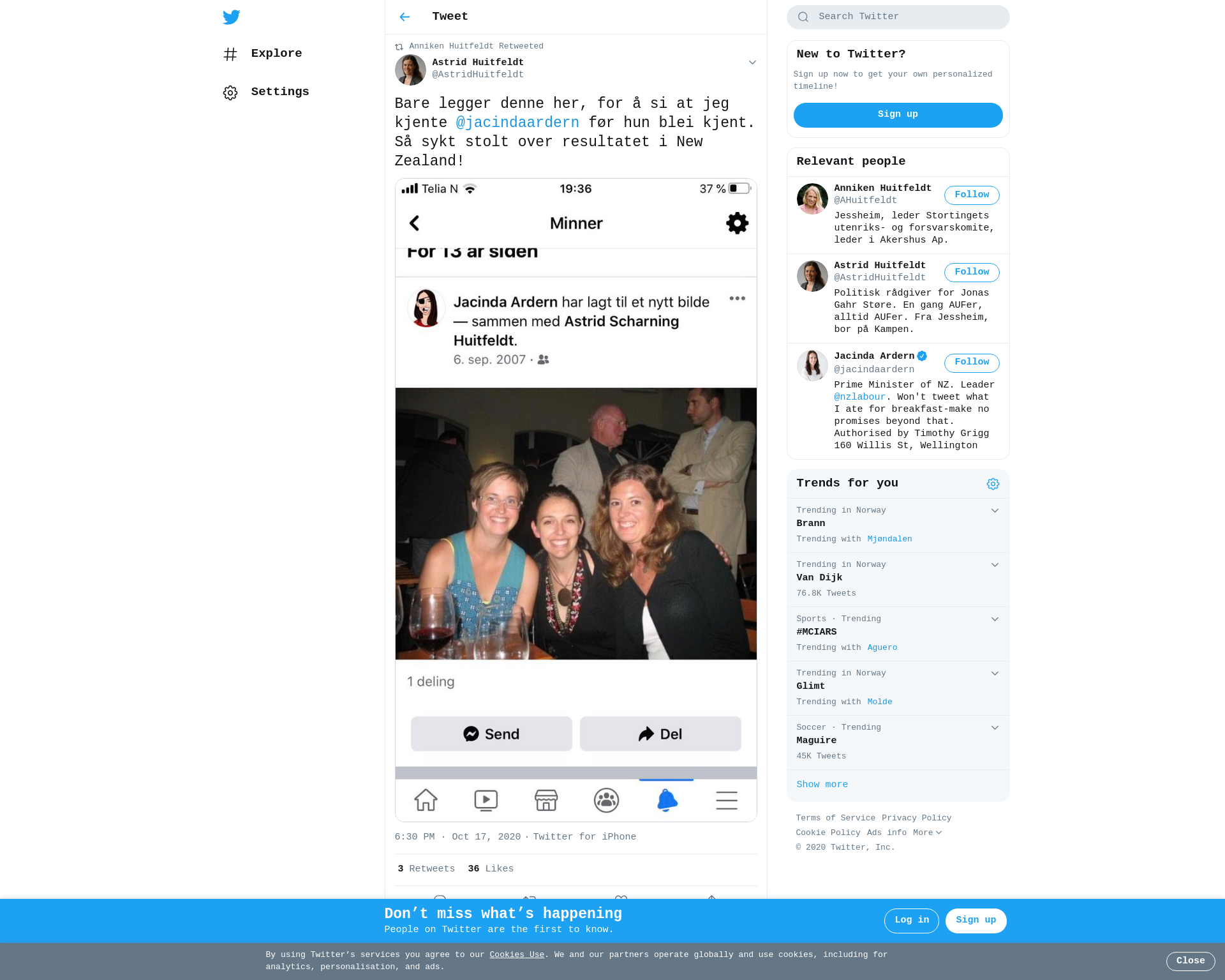 RT @AstridHuitfeldt: Bare legger denne her, for å si at jeg kjente @jacindaardern før hun blei kjent. Så sykt stolt over resultatet i New Zealand! https://t.co/PaBbcI0urW