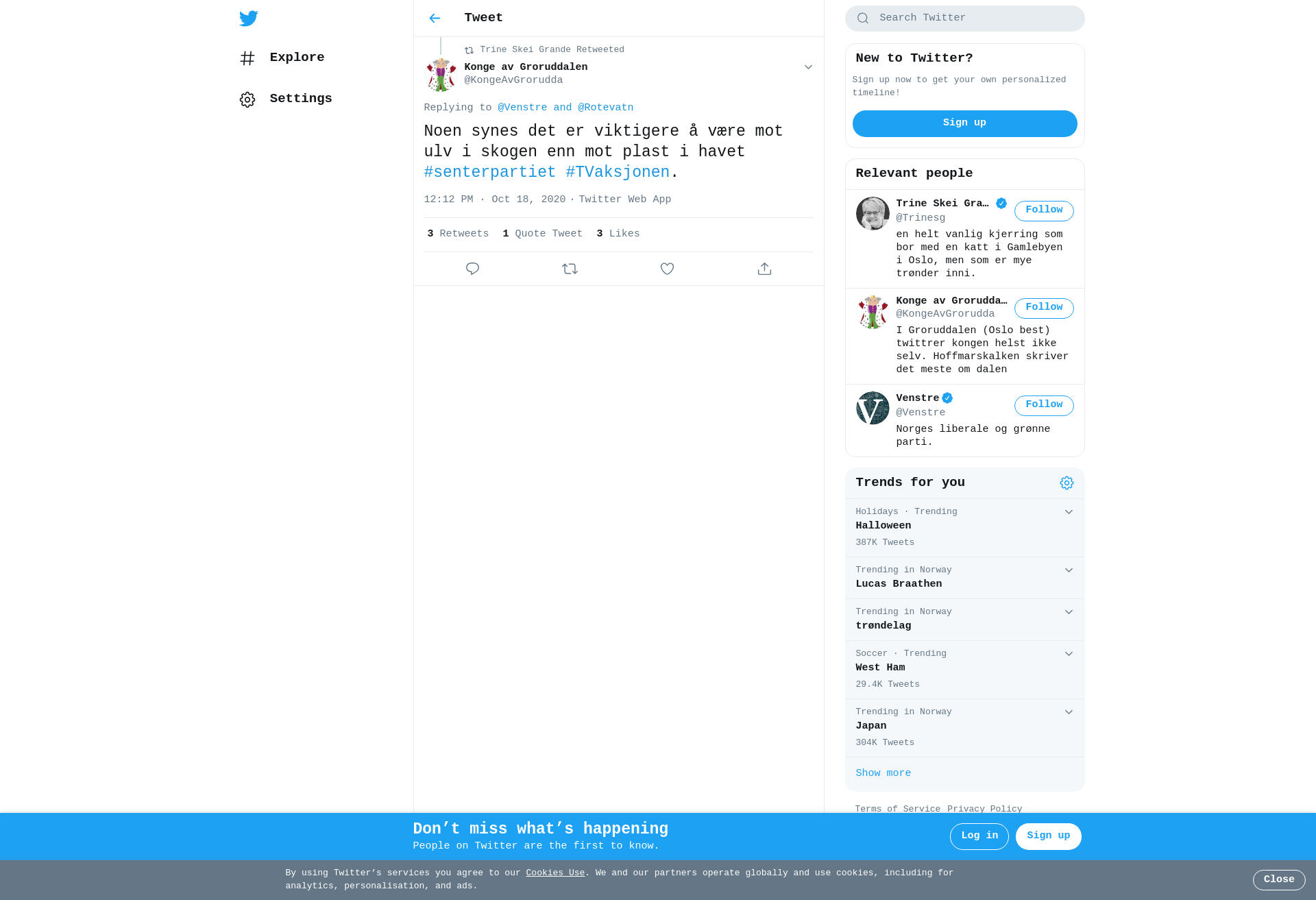 RT @KongeAvGrorudda: @Venstre @Rotevatn Noen synes det er viktigere å være mot ulv i skogen enn mot plast i havet #senterpartiet #TVaksjonen.