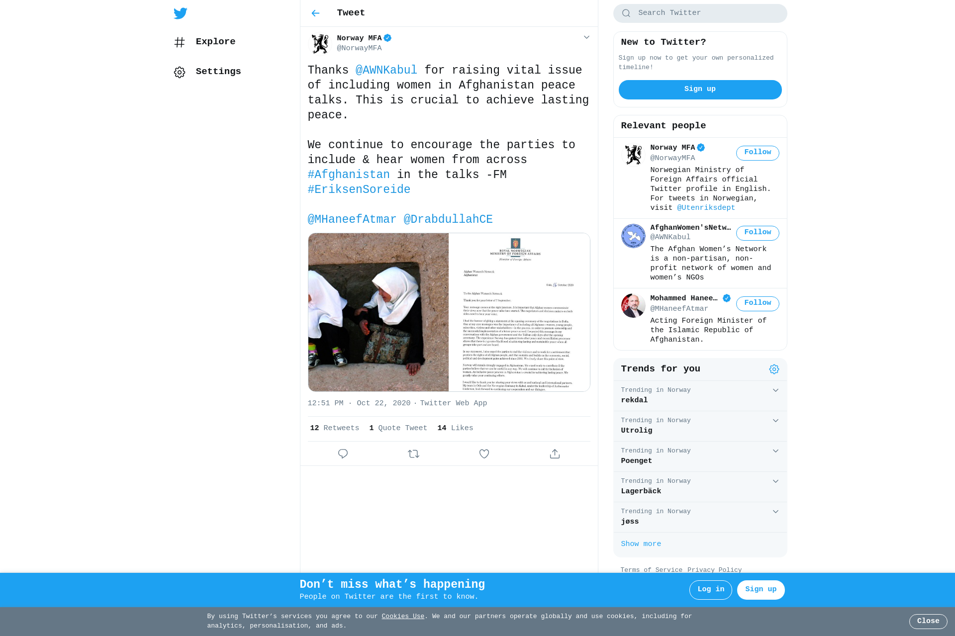 We continue to encourage the parties to include & hear women from across #Afghanistan in the talks -FM #EriksenSoreide