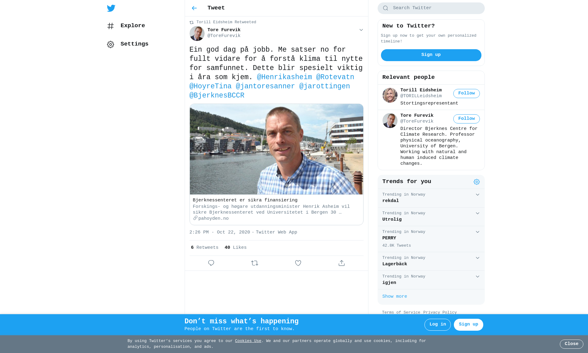 RT @ToreFurevik: Ein god dag på jobb. Me satser no for fullt vidare for å forstå klima til nytte for samfunnet. Dette blir spesielt viktig i åra som kjem. @Henrikasheim @Rotevatn @HoyreTina @jantoresanner @jarottingen @BjerknesBCCR