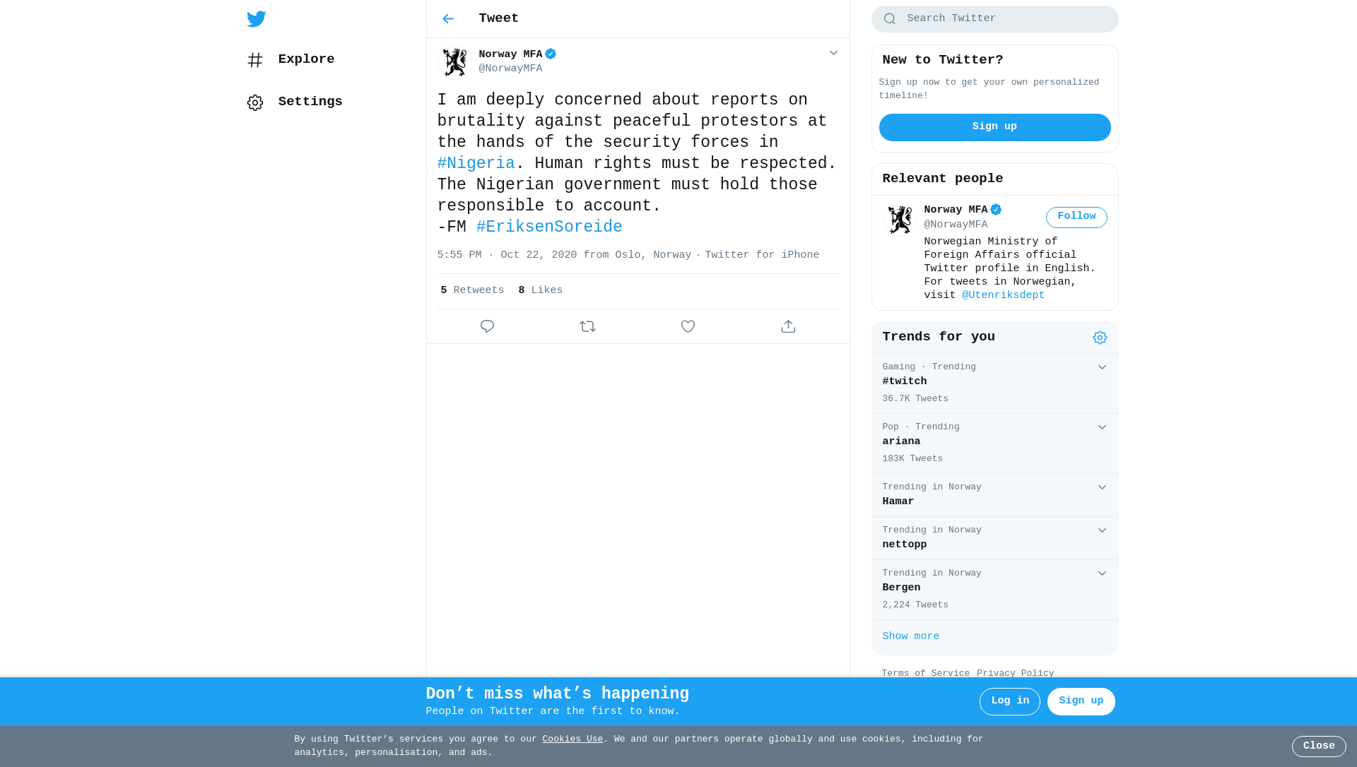 I am deeply concerned about reports on brutality against peaceful protestors at the hands of the security forces in #Nigeria. Human rights must be respected. The Nigerian government must hold those responsible to account.