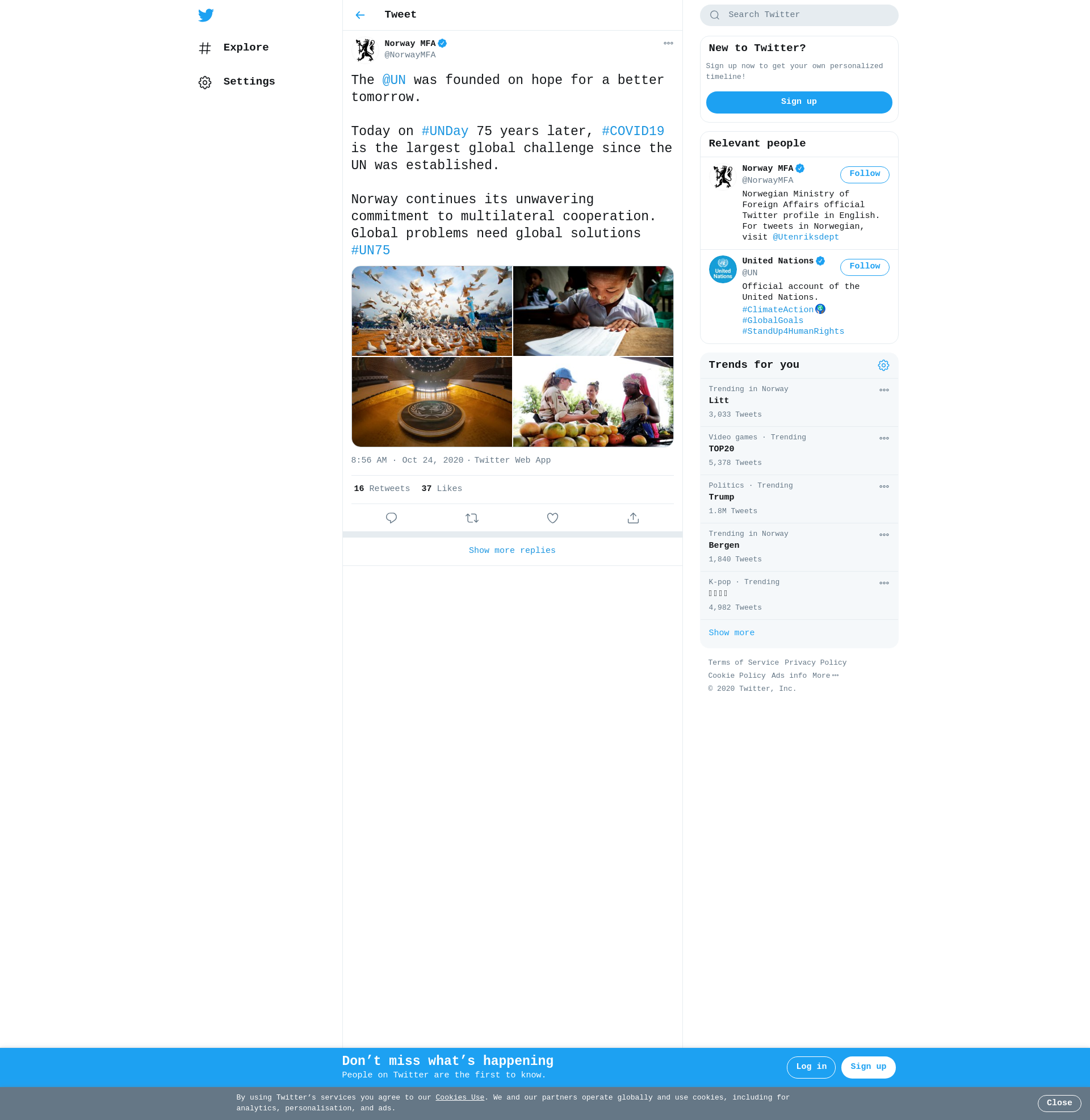 Norway continues its unwavering commitment to multilateral cooperation. Global problems need global solutions #UN75 https://t.co/mIMnVOa5Sv