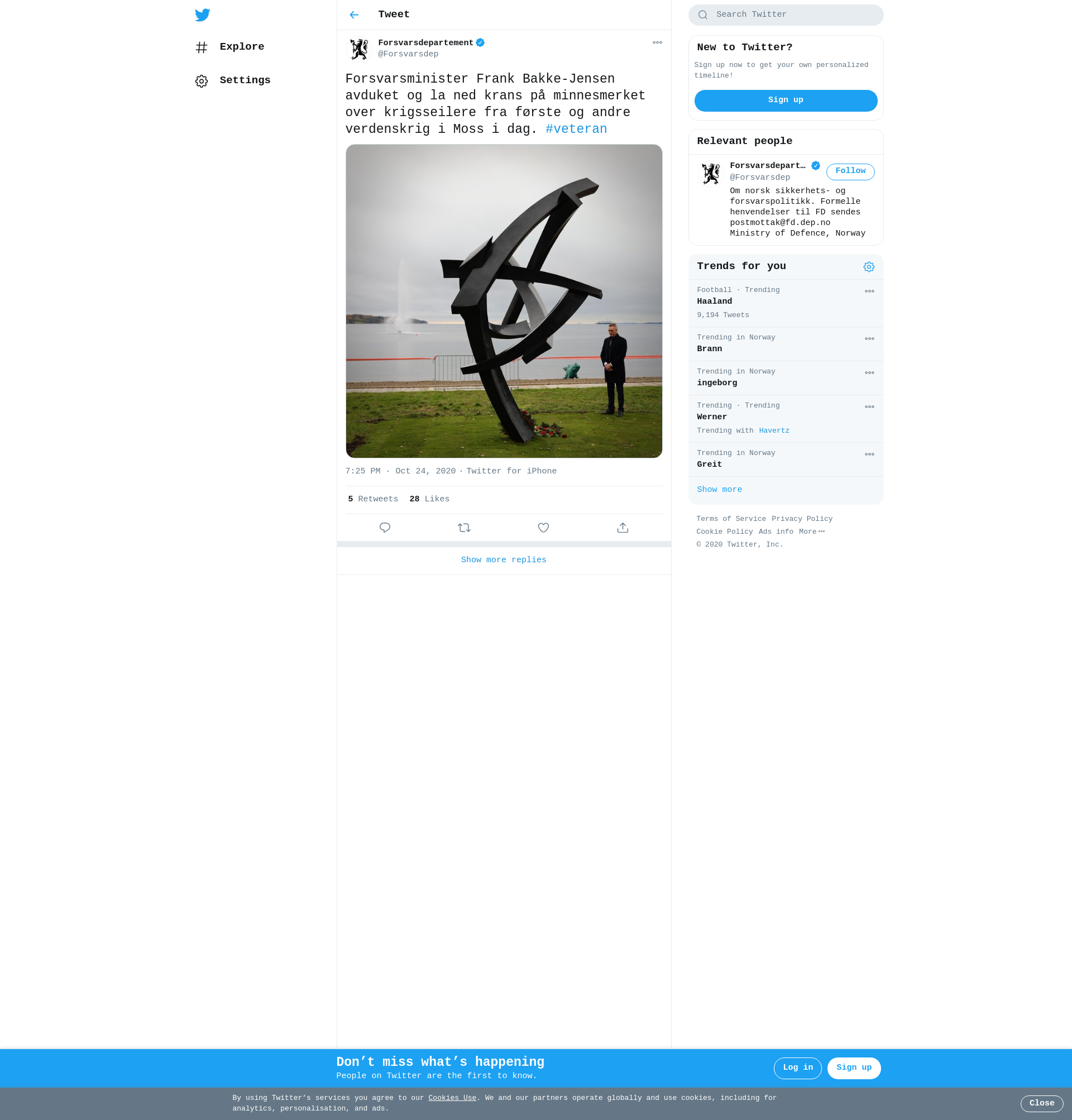 Forsvarsminister Frank Bakke-Jensen avduket og la ned krans på minnesmerket over krigsseilere fra første og andre verdenskrig i Moss i dag. #veteran https://t.co/cMlHkSOIdQ