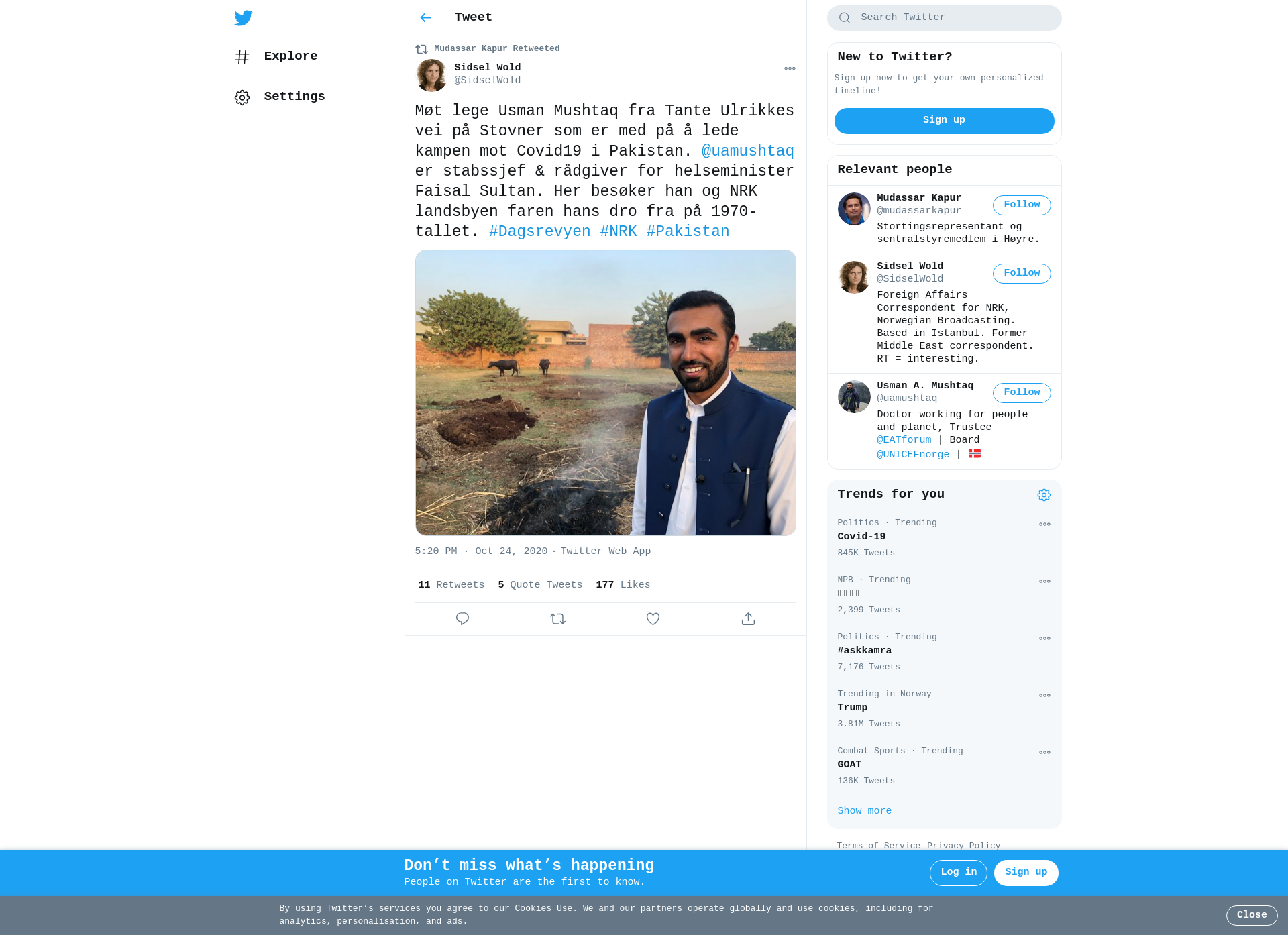 RT @SidselWold: Møt lege Usman Mushtaq fra Tante Ulrikkes vei på Stovner som er med på å lede kampen mot Covid19 i Pakistan. @uamushtaq er stabssjef & rådgiver for helseminister Faisal Sultan. Her besøker han og NRK landsbyen faren hans dro fra på 1970-tallet. #Dagsrevyen #NRK #Pakistan https://t.co/roENvVkdGg