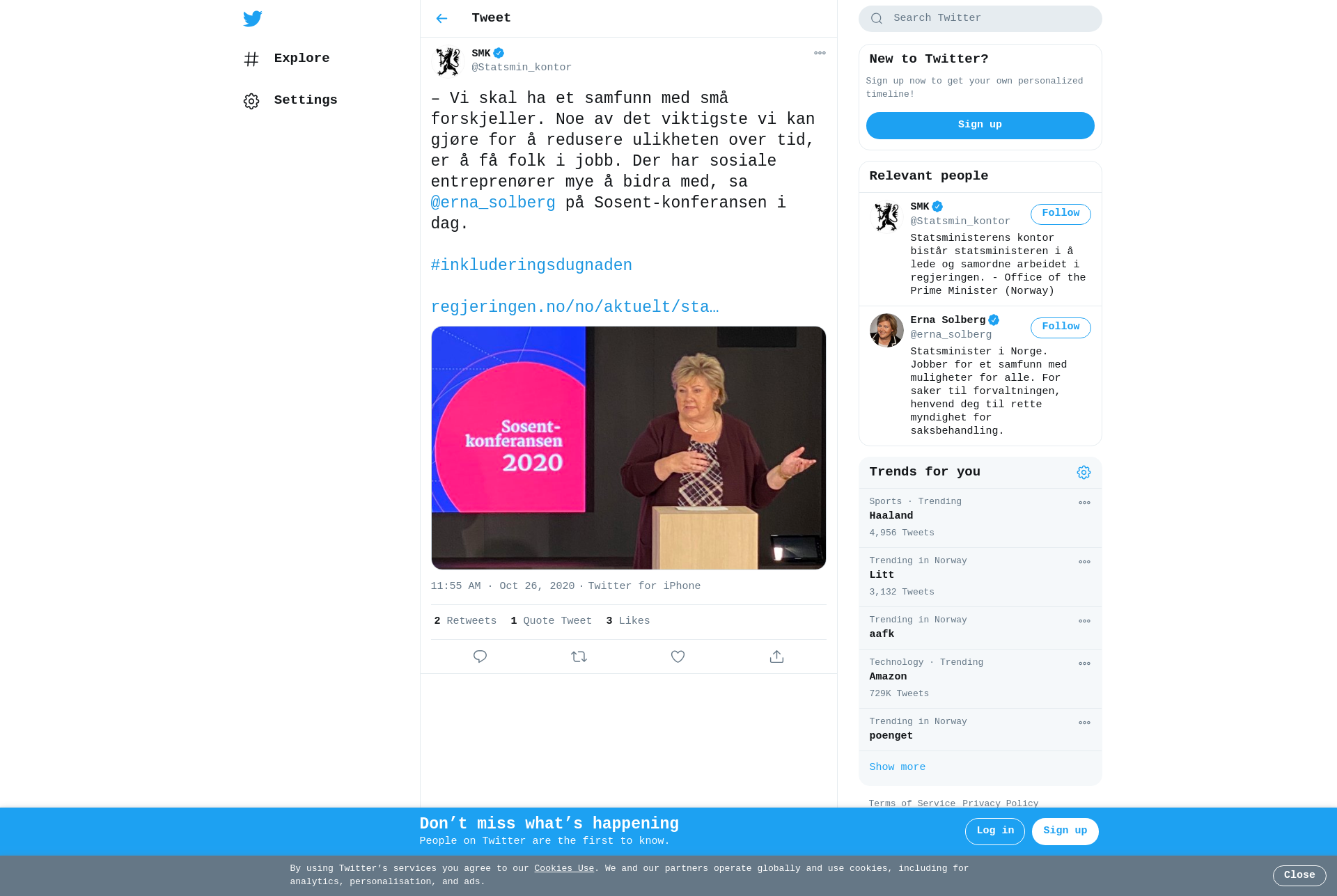 – Vi skal ha et samfunn med små forskjeller. Noe av det viktigste vi kan gjøre for å redusere ulikheten over tid, er å få folk i jobb. Der har sosiale entreprenører mye å bidra med, sa @erna_solberg på Sosent-konferansen i dag.