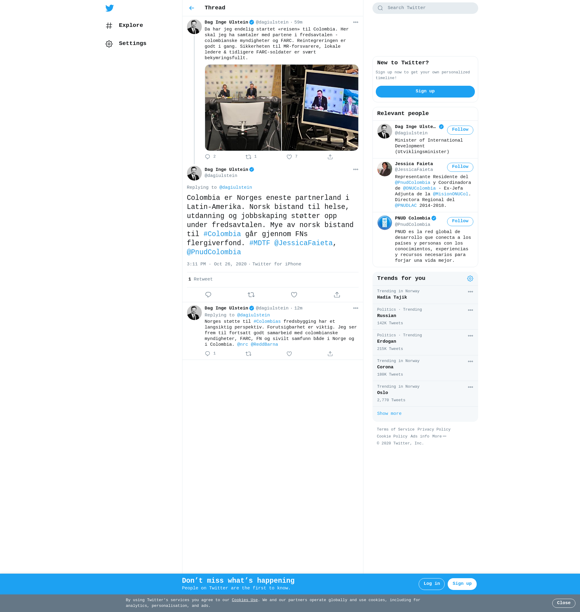 Colombia er Norges eneste partnerland i Latin-Amerika. Norsk bistand til helse, utdanning og jobbskaping støtter opp under fredsavtalen. Mye av norsk bistand til #Colombia går gjennom FNs flergiverfond. #MDTF @JessicaFaieta, @PnudColombia
