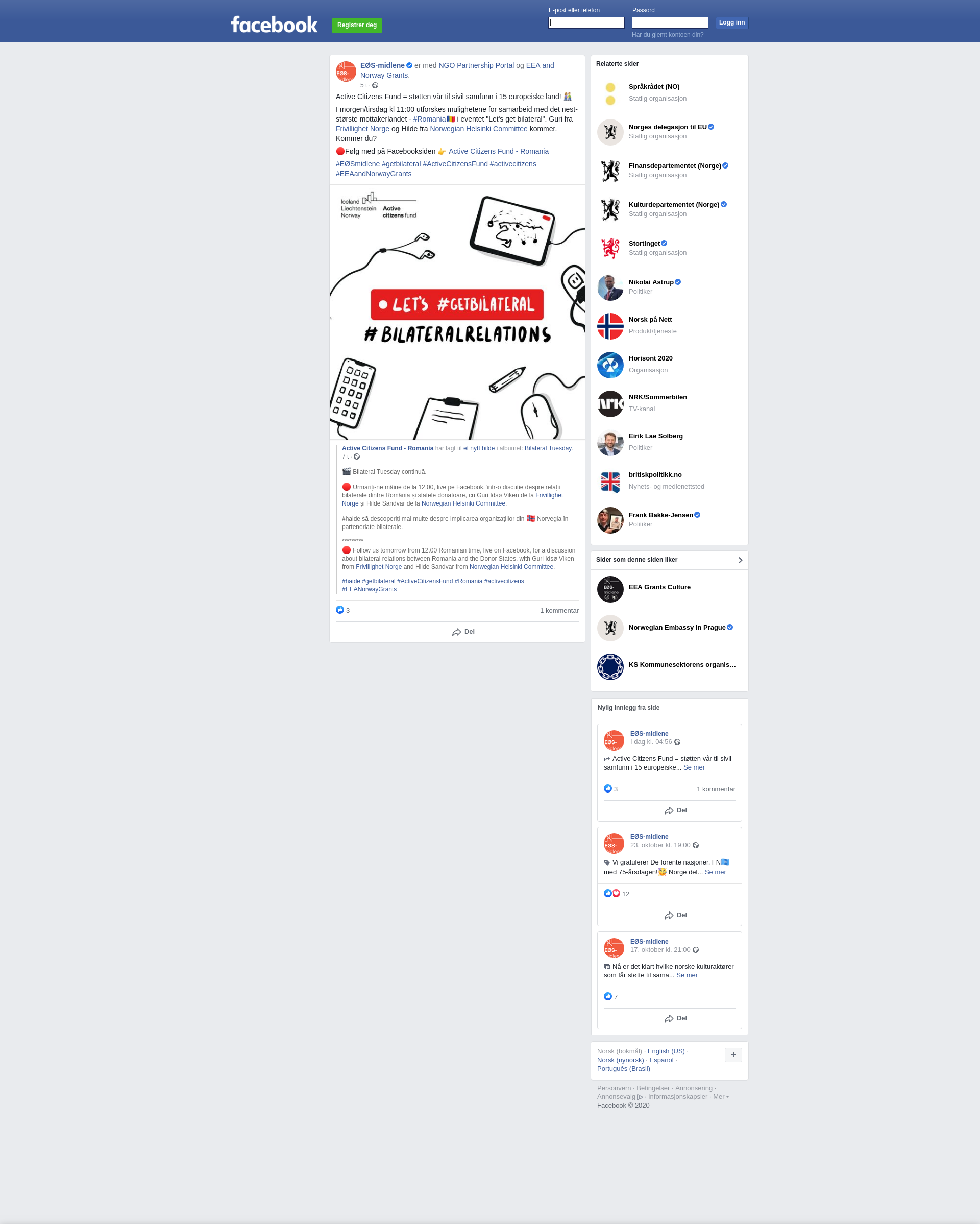 🔴 Urmăriți-ne mâine de la 12.00, live pe Facebook, într-o discuție despre relații bilaterale dintre România și statele donatoare, cu Guri Idsø Viken de la Frivillighet Norge și Hilde Sandvar de la Norwegian Helsinki Committee.