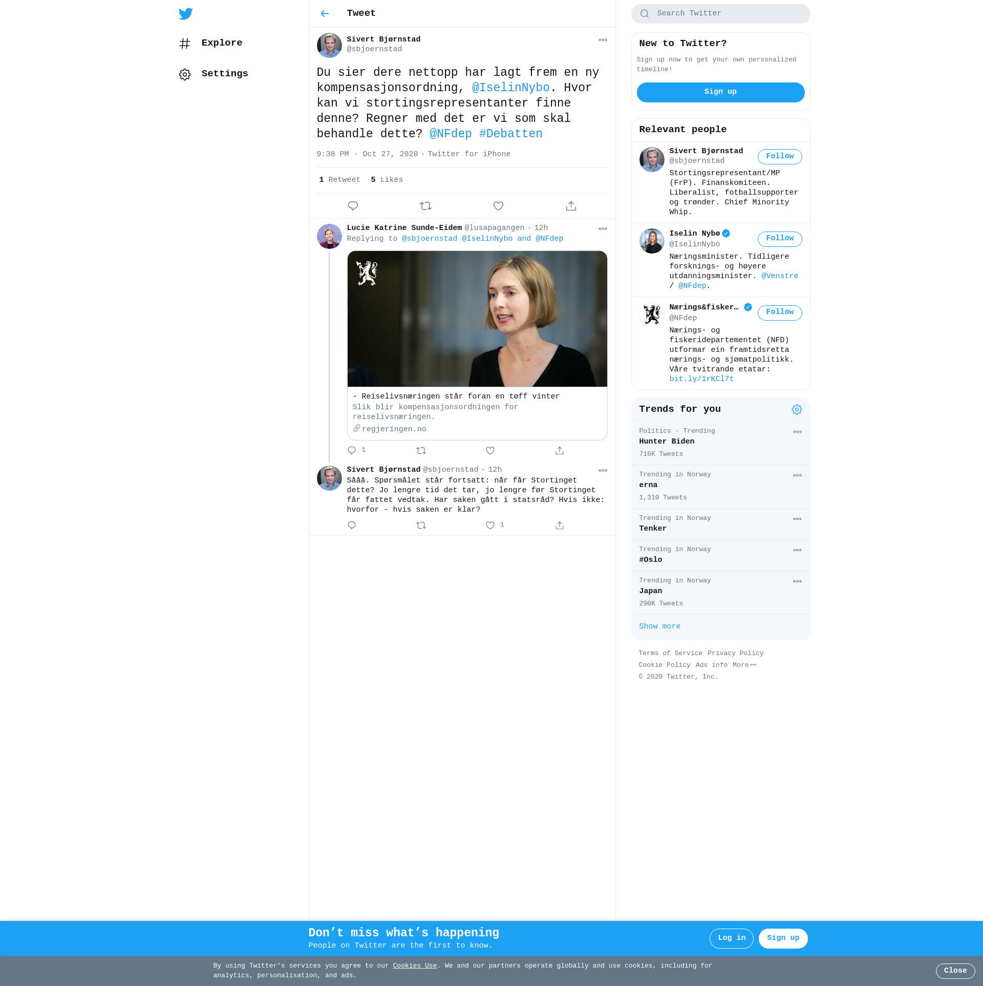 Du sier dere nettopp har lagt frem en ny kompensasjonsordning, @IselinNybo. Hvor kan vi stortingsrepresentanter finne denne? Regner med det er vi som skal behandle dette? @NFdep #Debatten