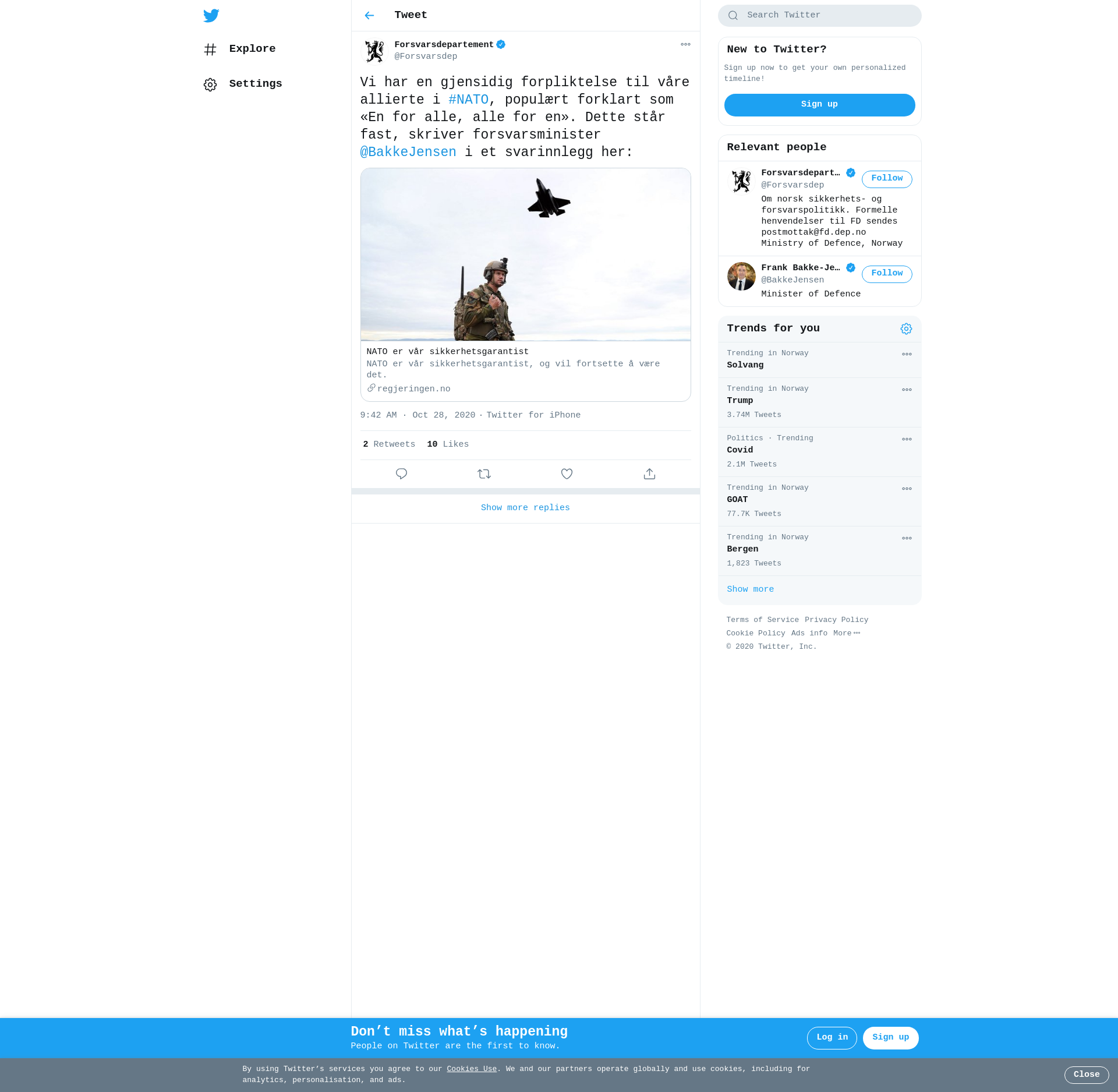 Vi har en gjensidig forpliktelse til våre allierte i #NATO, populært forklart som «En for alle, alle for en». Dette står fast, skriver forsvarsminister @BakkeJensen i et svarinnlegg her: