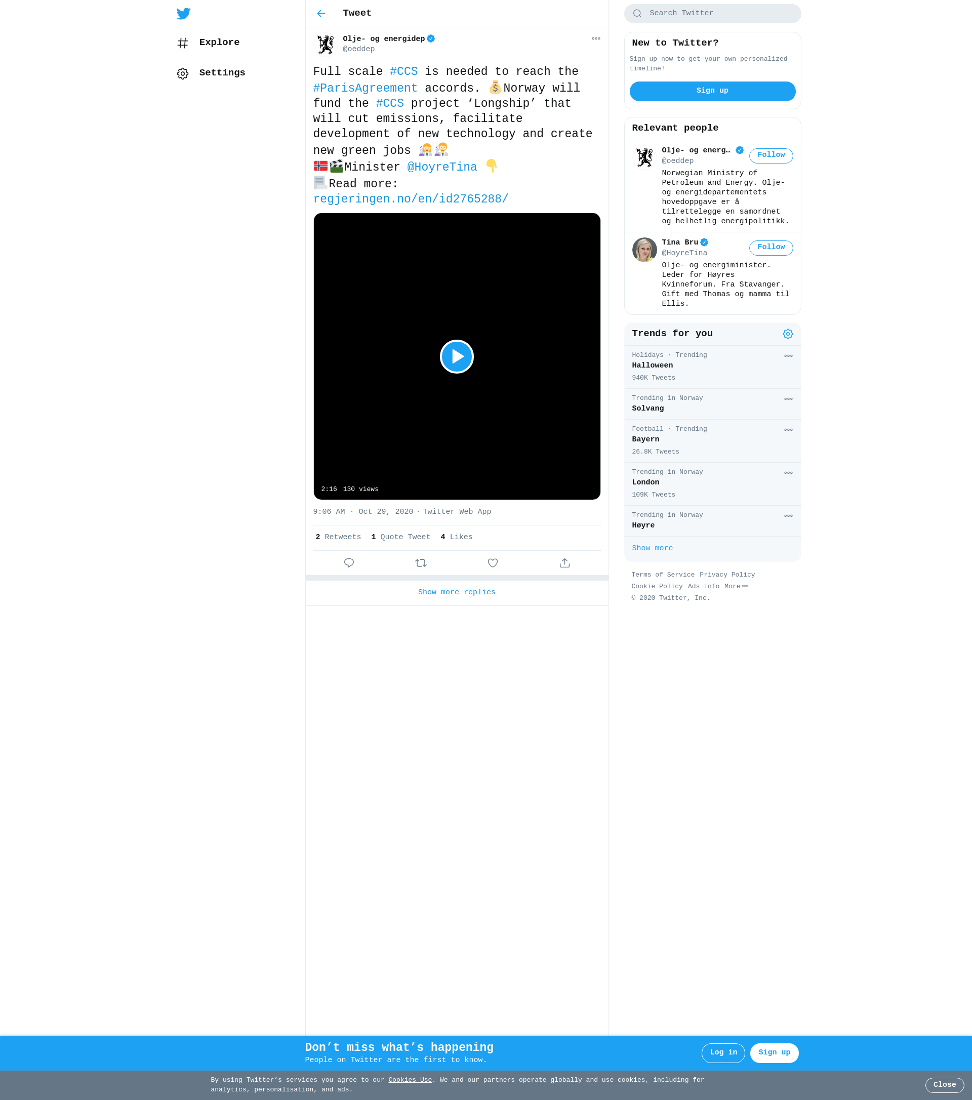 In a Government White Paper to the Norwegian parliament submitted today, the Government proposes to launch a carbon capture and storage (CCS) project in Norway. The project has been named ‘Longship’, in Norwegian 'Langskip'.