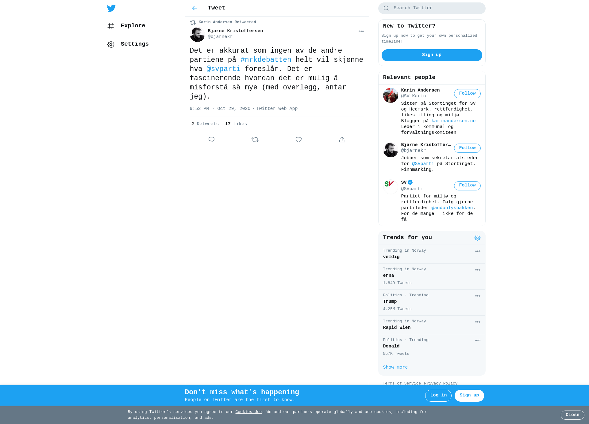 RT @bjarnekr: Det er akkurat som ingen av de andre partiene på #nrkdebatten helt vil skjønne hva @svparti foreslår. Det er fascinerende hvordan det er mulig å misforstå så mye (med overlegg, antar jeg).