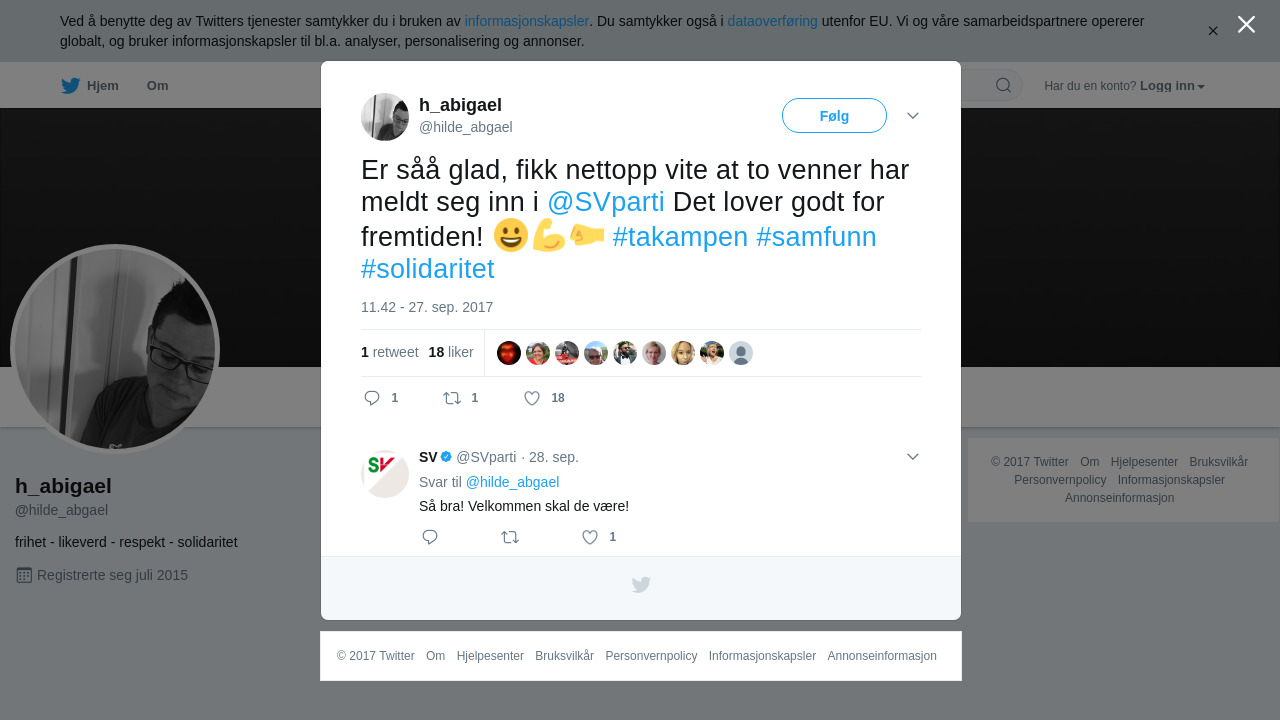 RT @hilde_abgael: Er såå glad, fikk nettopp vite at to venner har meldt seg inn i @SVparti Det lover godt for fremtiden! 😀💪🤛 #takampen #samfunn #solidaritet
