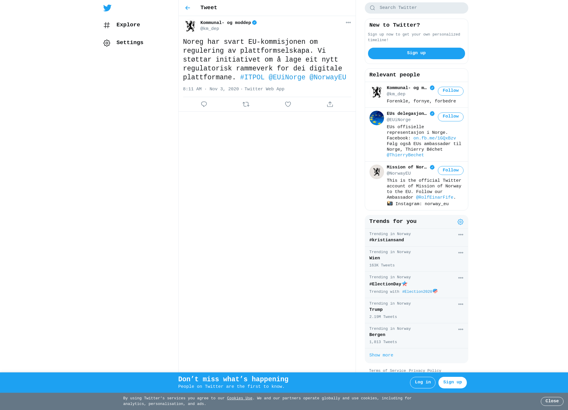 Noreg har svart EU-kommisjonen om regulering av plattformselskapa. Vi støttar initiativet om å lage eit nytt regulatorisk rammeverk for dei digitale plattformane. #ITPOL @EUiNorge @NorwayEU