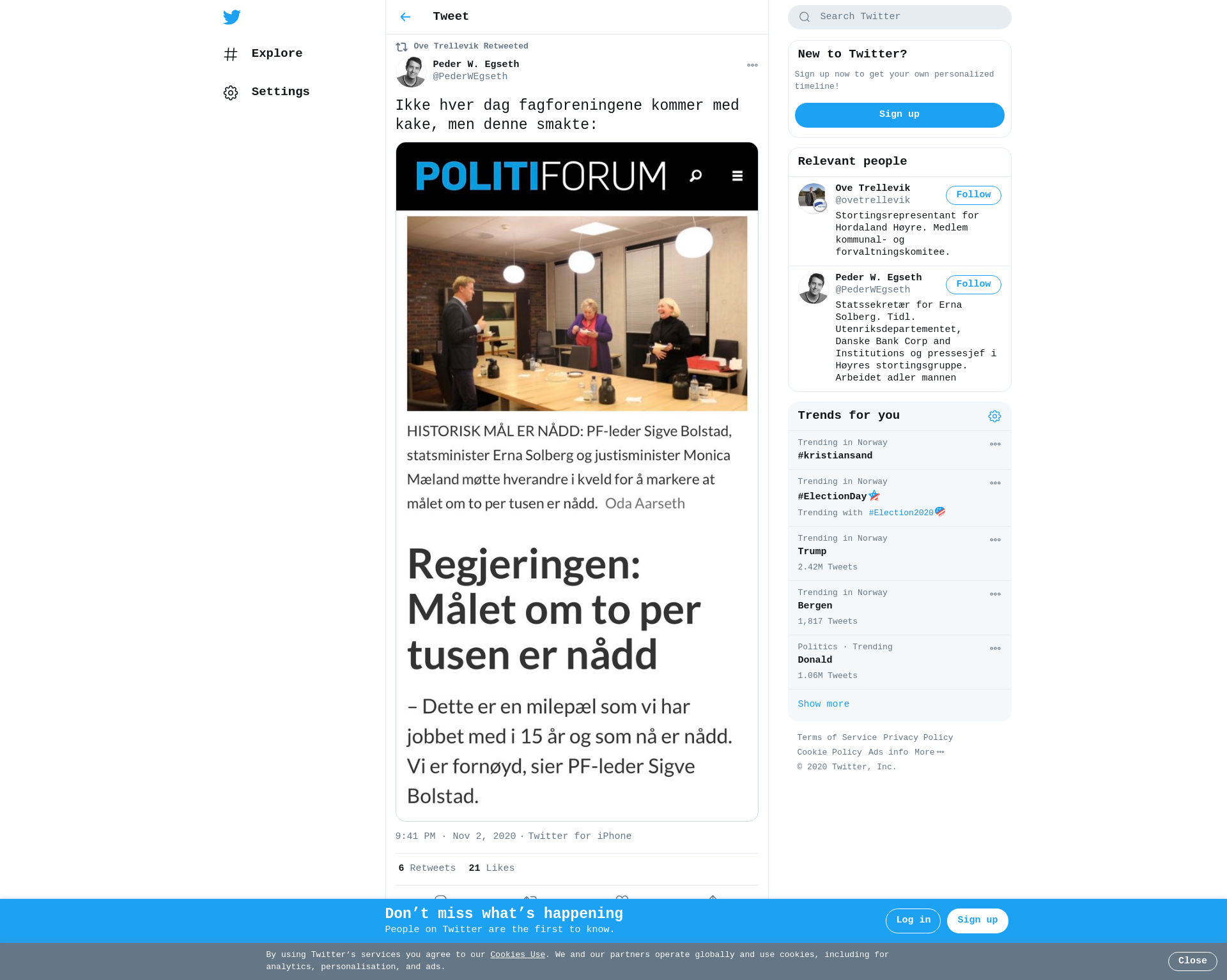 RT @PederWEgseth: Ikke hver dag fagforeningene kommer med kake, men denne smakte: https://t.co/o3ZiX5xqYK