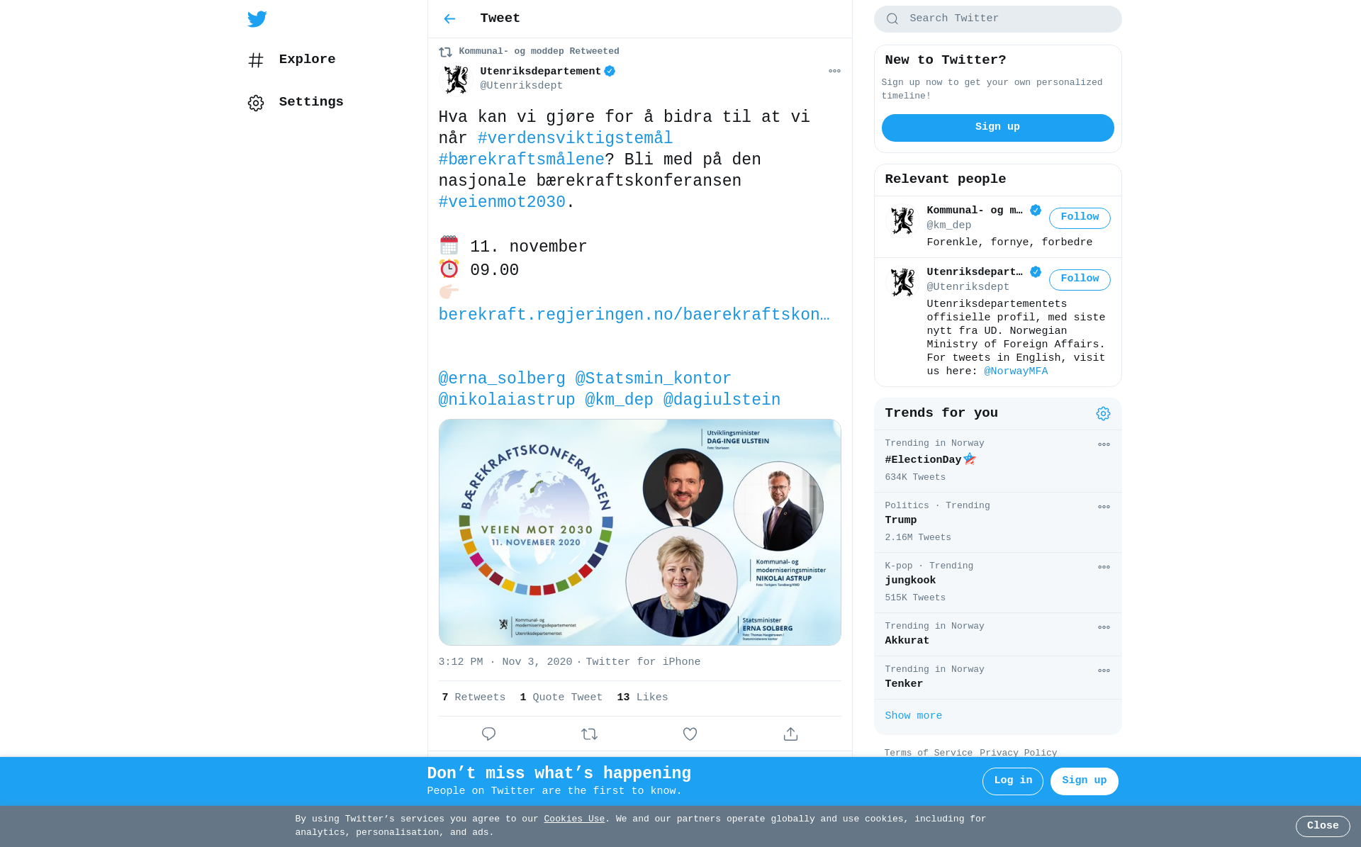 RT @Utenriksdept: Hva kan vi gjøre for å bidra til at vi når #verdensviktigstemål #bærekraftsmålene? Bli med på den nasjonale bærekraftskonferansen #veienmot2030.