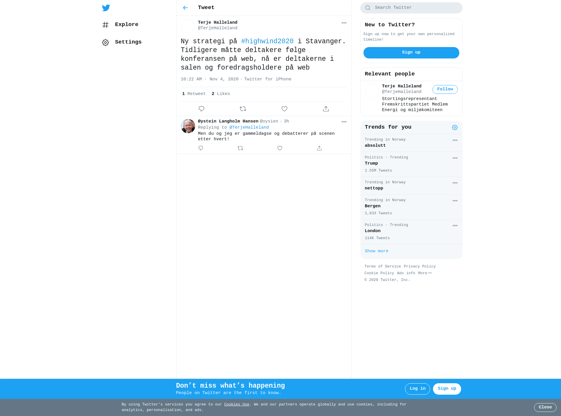 Ny strategi på #highwind2020 i Stavanger. Tidligere måtte deltakere følge konferansen på web, nå er deltakerne i salen og foredragsholdere på web