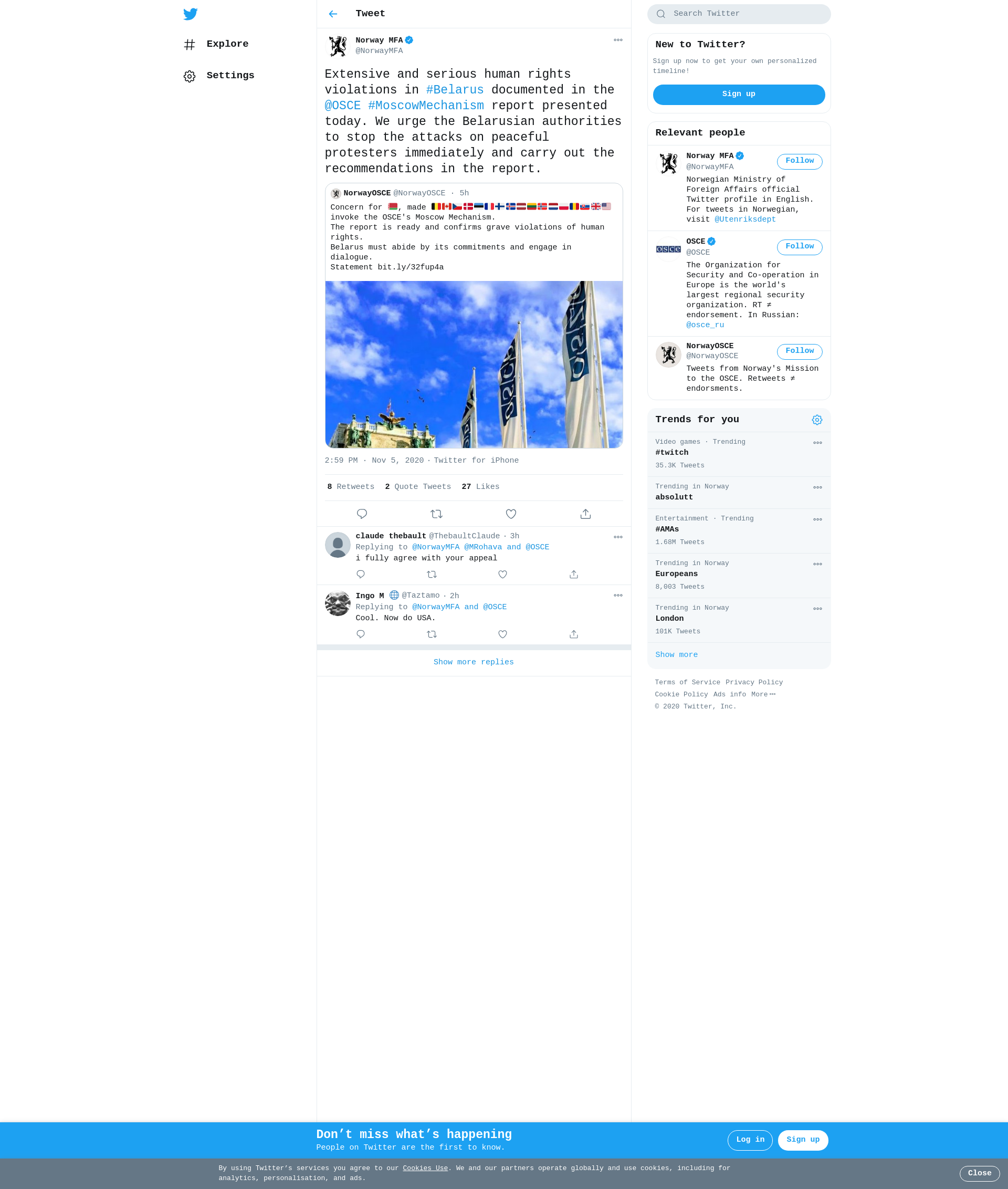 Statement Delivered by H.E. Ren é Rosager Dinesen, Ambassador of Denmark at the 1288. Permanent Council Vienna, 5. November I am delivering this statement on behalf of the following delegations who, acting together, on 17 September invoked the Moscow Mechanism in relation to concerns centring around reports of serious human rights violations and abuses in Belarus: Belgium, Canada, the Czech Republic, Denmark, Estonia, France, Finland, Iceland, Latvia, Lithuania, Norway, the Netherlands, Poland, Romania,