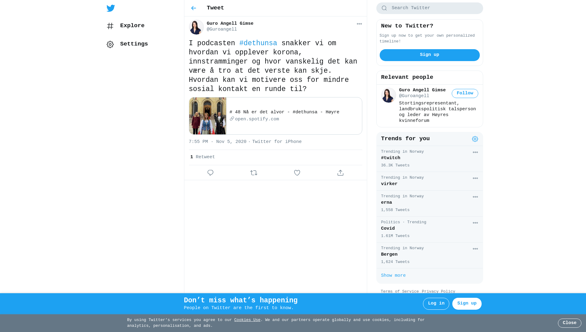 I podcasten #dethunsa snakker vi om hvordan vi opplever korona, innstramminger og hvor vanskelig det kan være å tro at det verste kan skje. Hvordan kan vi motivere oss for mindre sosial kontakt en runde til? https://t.co/DxbNiUsrhV
