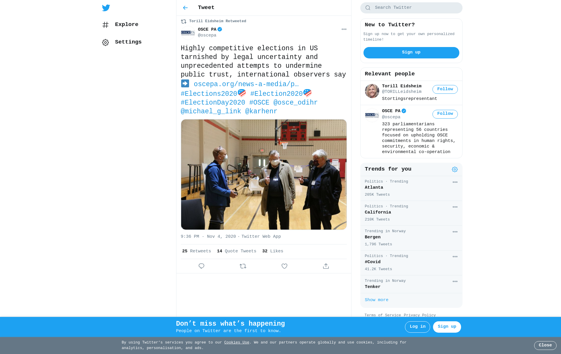 RT @oscepa: Highly competitive elections in US tarnished by legal uncertainty and unprecedented attempts to undermine public trust, international observers say ➡️ https://t.co/MmSdGYSgZE #Elections2020 #Election2020 #ElectionDay2020 #OSCE @osce_odihr @michael_g_link @karhenr https://t.co/YLQaAFY6lr
