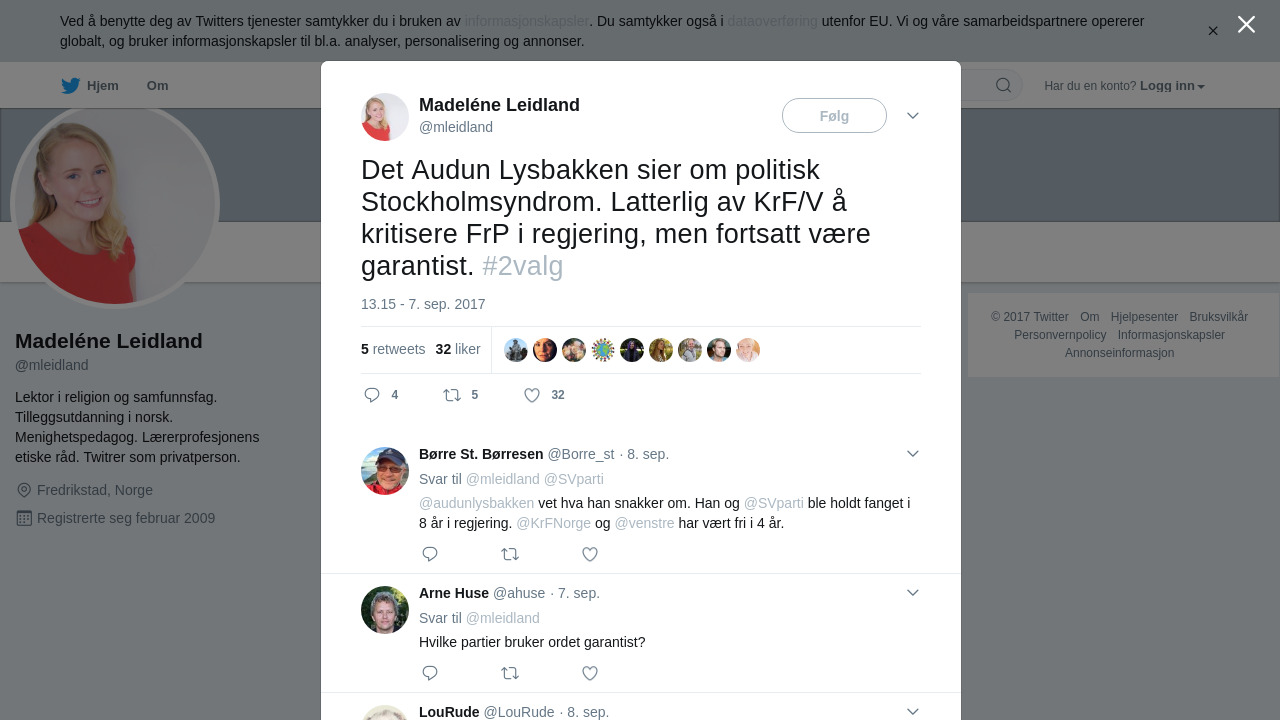 RT @mleidland: Det Audun Lysbakken sier om politisk Stockholmsyndrom. Latterlig av KrF/V å kritisere FrP i regjering, men fortsatt være garantist. #2valg