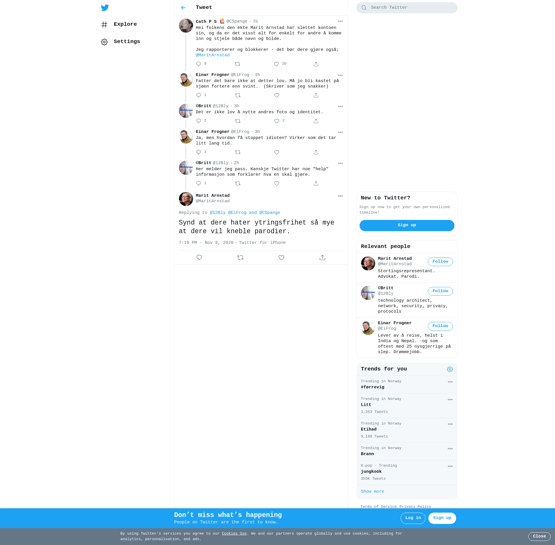 @12Bly @EiFrog @CSpange Synd at dere hater ytringsfrihet så mye at dere vil kneble parodier.