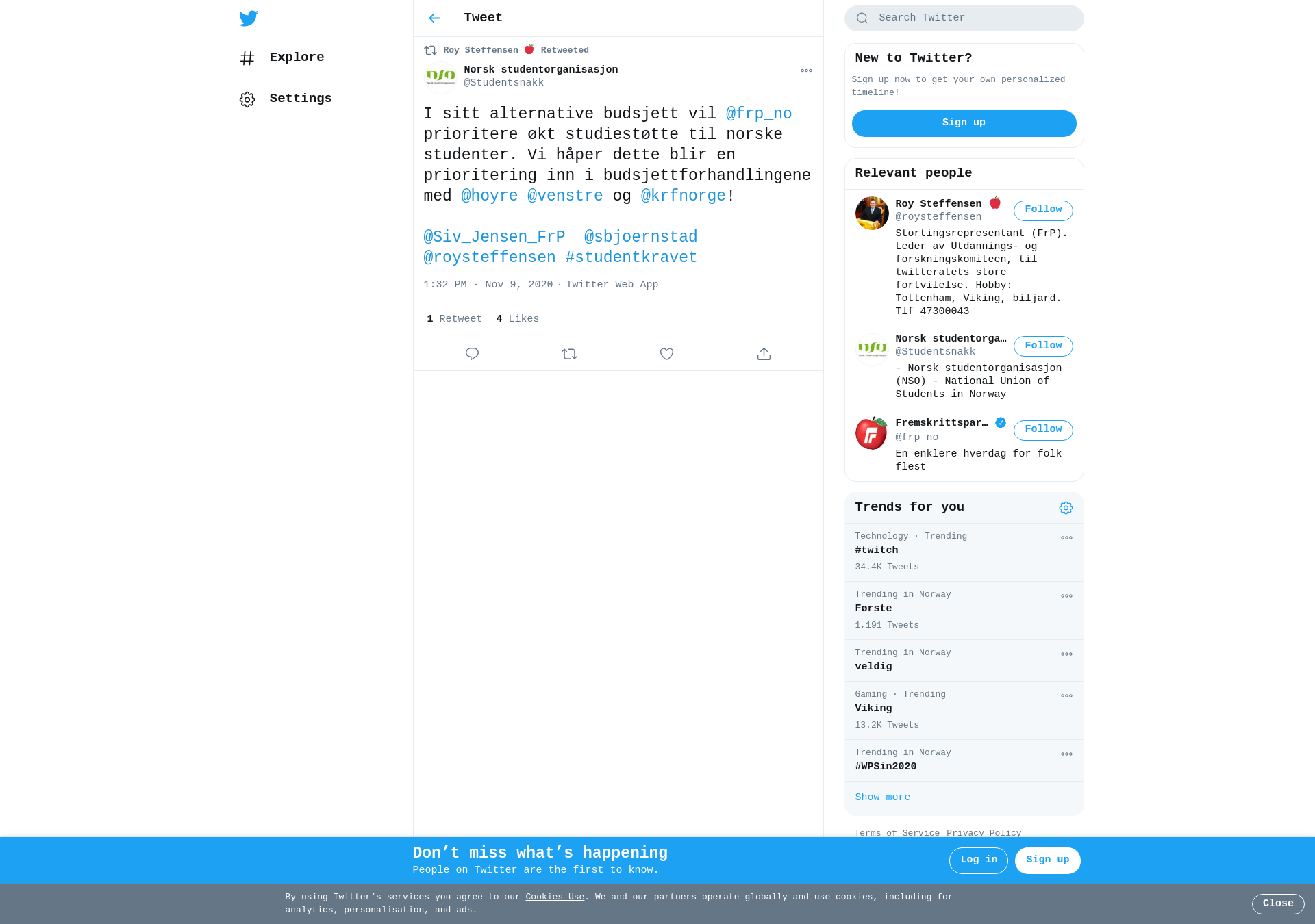 @Siv_Jensen_FrP @sbjoernstad @roysteffensen #studentkravet