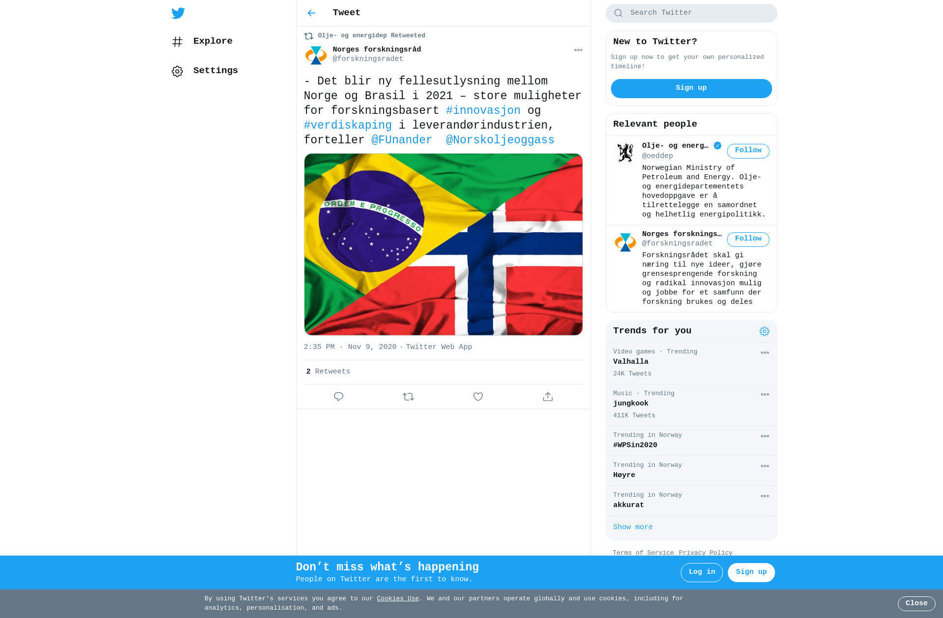 RT @forskningsradet: - Det blir ny fellesutlysning mellom Norge og Brasil i 2021 – store muligheter for forskningsbasert #innovasjon og #verdiskaping i leverandørindustrien, forteller @FUnander @Norskoljeoggass https://t.co/V1ZPkO4447