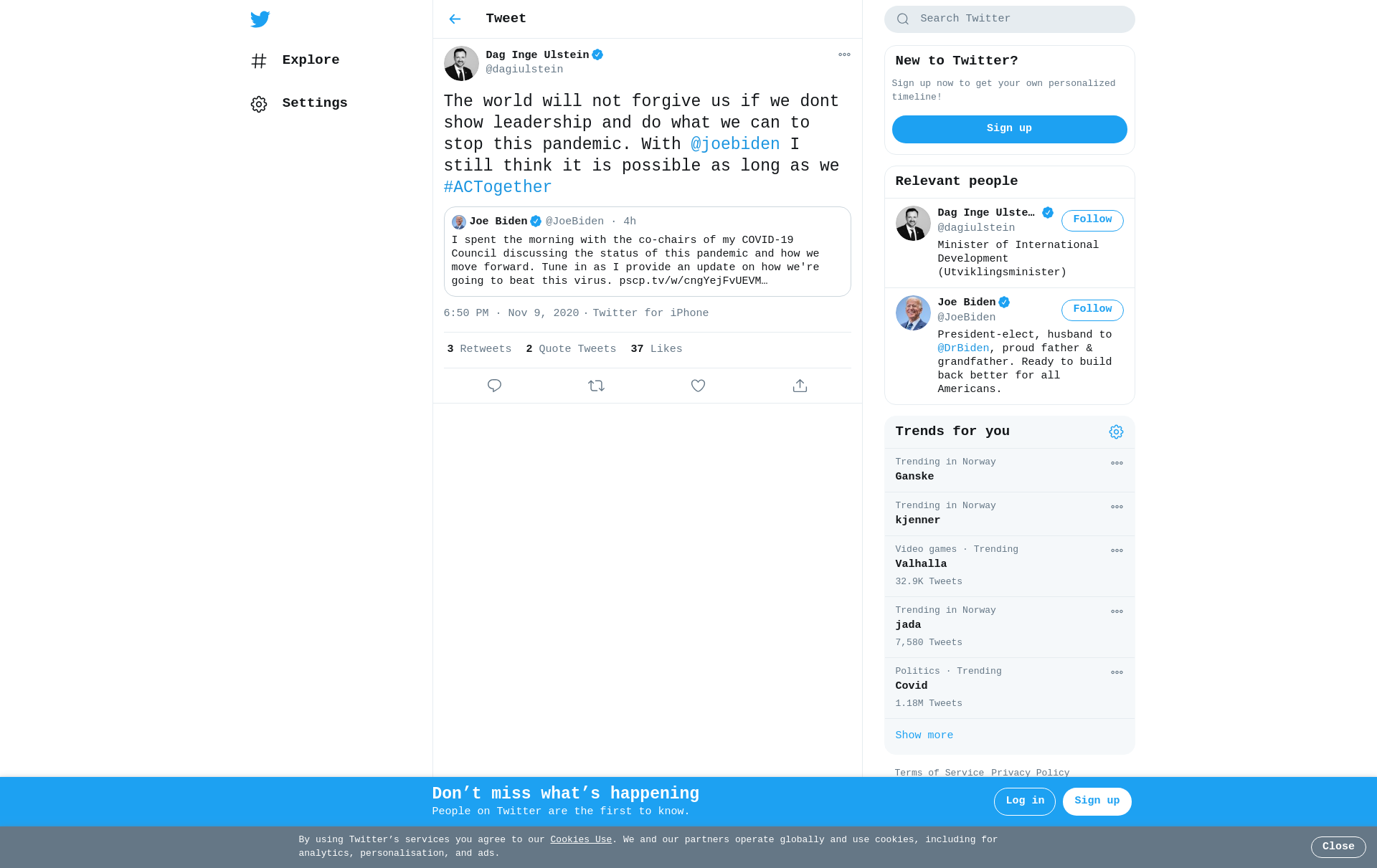 The world will not forgive us if we dont show leadership and do what we can to stop this pandemic. With @joebiden I still think it is possible as long as we #ACTogether