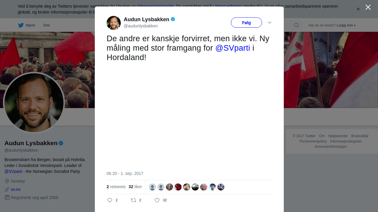 RT @audunlysbakken: De andre er kanskje forvirret, men ikke vi. Ny måling med stor framgang for @SVparti i Hordaland! https://t.co/SPYdfegHIO