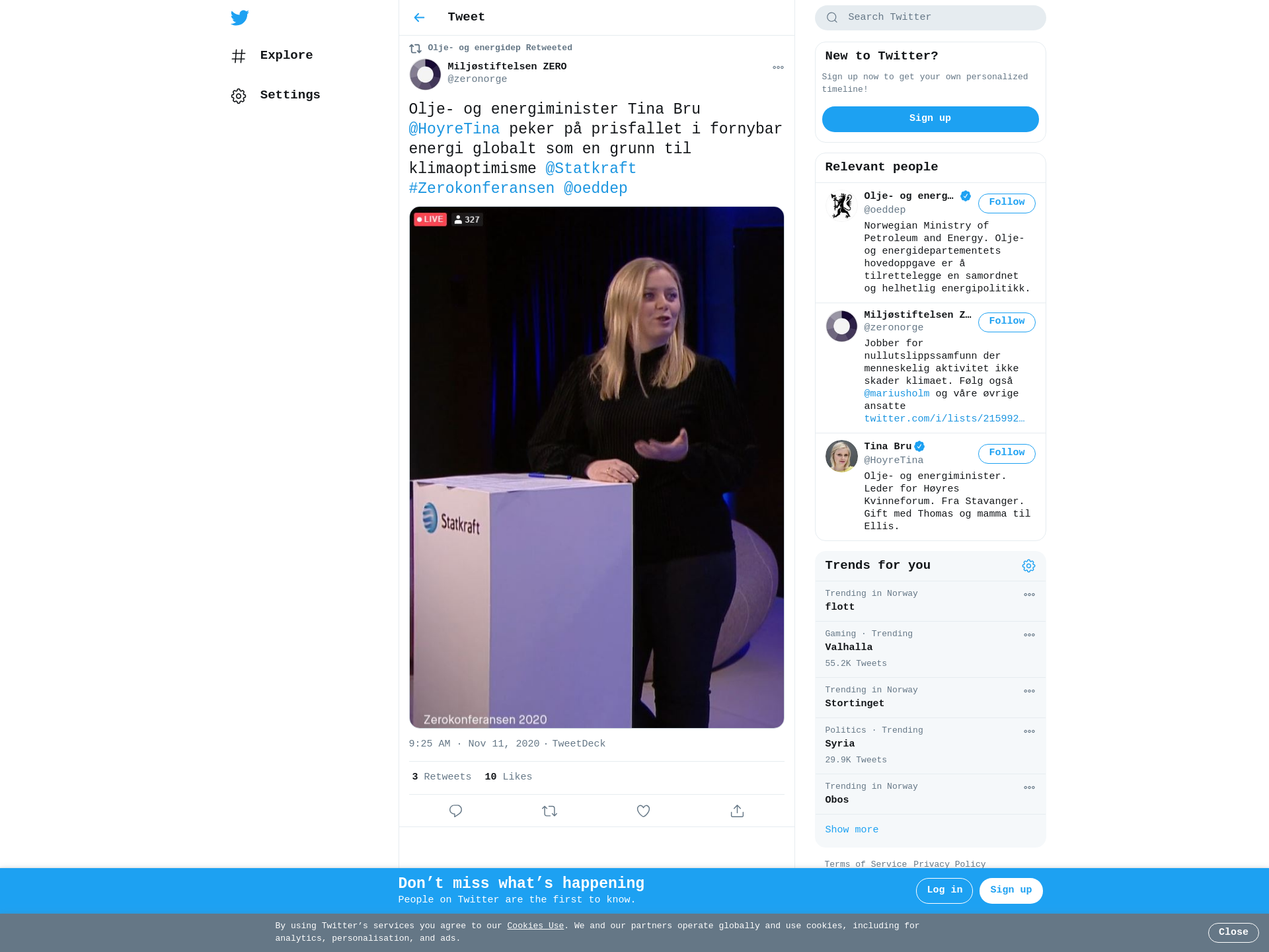 RT @zeronorge: Olje- og energiminister Tina Bru @HoyreTina peker på prisfallet i fornybar energi globalt som en grunn til klimaoptimisme @Statkraft #Zerokonferansen @oeddep https://t.co/P9JVE8RvyU