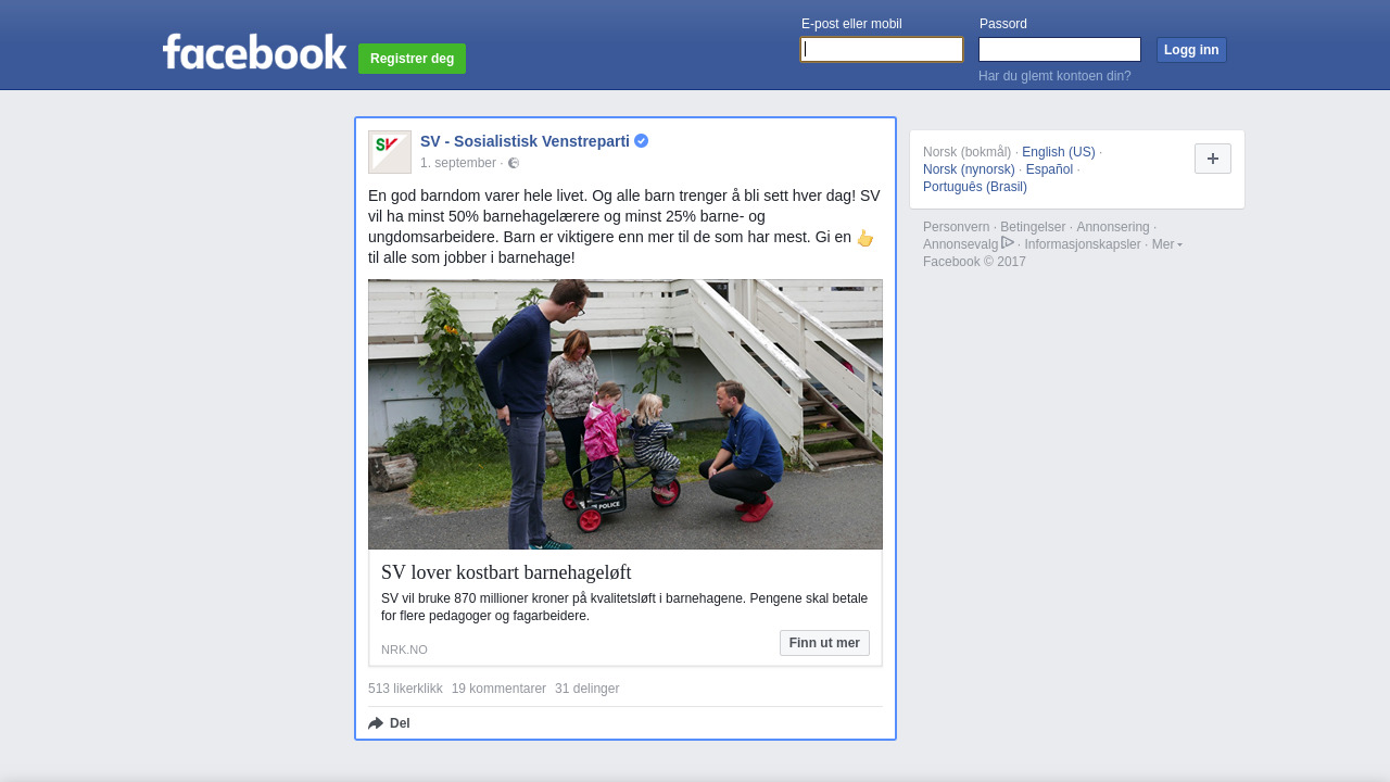 En god barndom varer hele livet. Og alle barn trenger å bli sett hver dag! SV vil ha minst 50% barnehagelærere og minst 25% barne- og ungdomsarbeidere. Barn er viktigere enn mer til de som har mest. Gi en 👍 til alle som jobber i barnehage!
