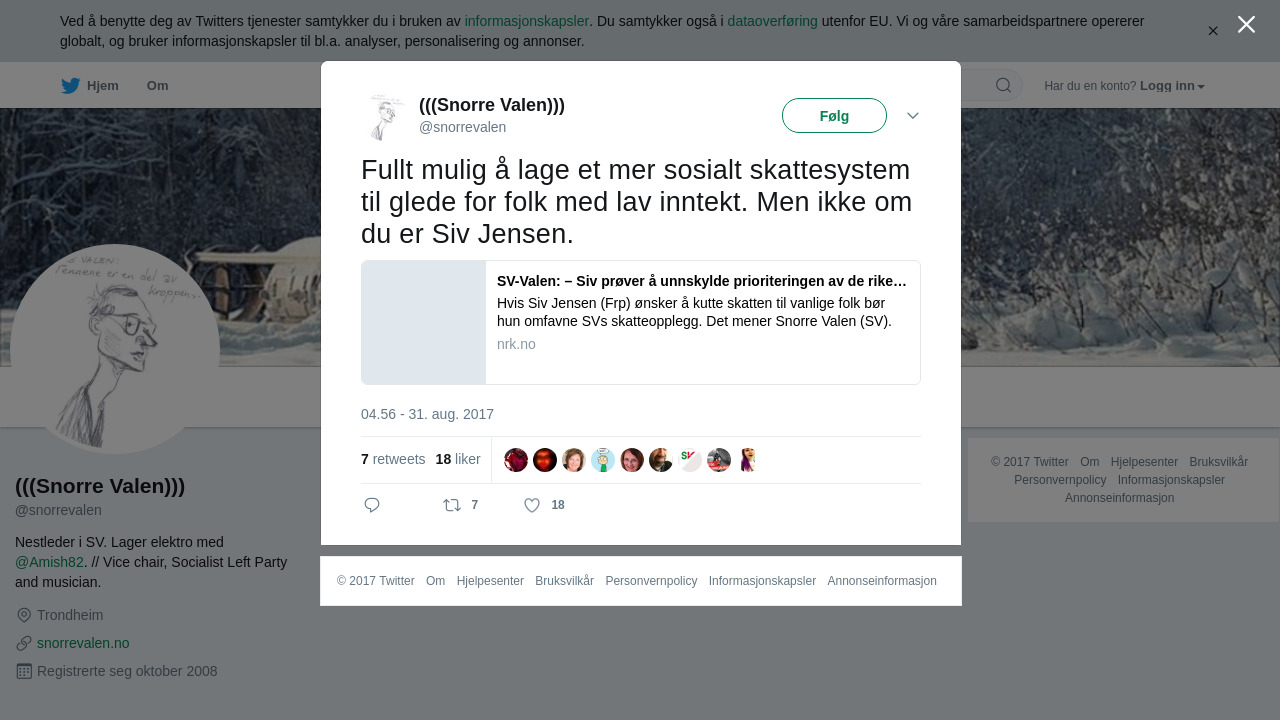 RT @snorrevalen: Fullt mulig å lage et mer sosialt skattesystem til glede for folk med lav inntekt. Men ikke om du er Siv Jensen. https://t.co/uOdMmbR1Er