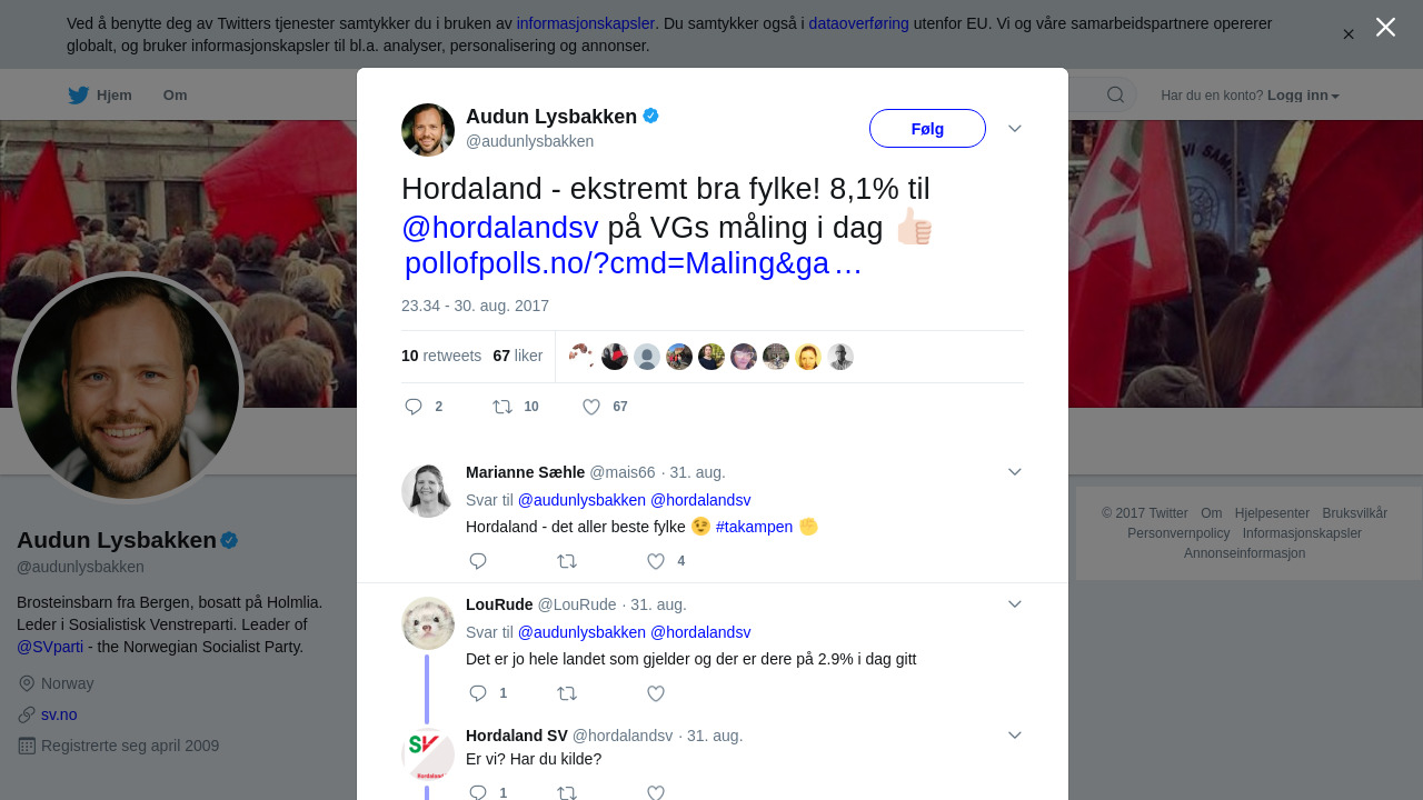 RT @audunlysbakken: Hordaland - ekstremt bra fylke! 8,1% til @hordalandsv på VGs måling i dag 👍🏻https://t.co/pxpeBSAnzT