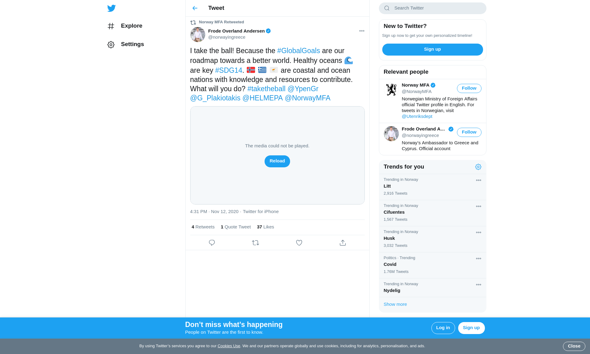 RT @norwayingreece: I take the ball! Because the #GlobalGoals are our roadmap towards a better world. Healthy oceans 🌊 are key #SDG14. 🇳🇴 🇬🇷 🇨🇾 are coastal and ocean nations with knowledge and resources to contribute. What will you do? #taketheball @YpenGr @G_Plakiotakis @HELMEPA @NorwayMFA https://t.co/AFYoU16ZVq