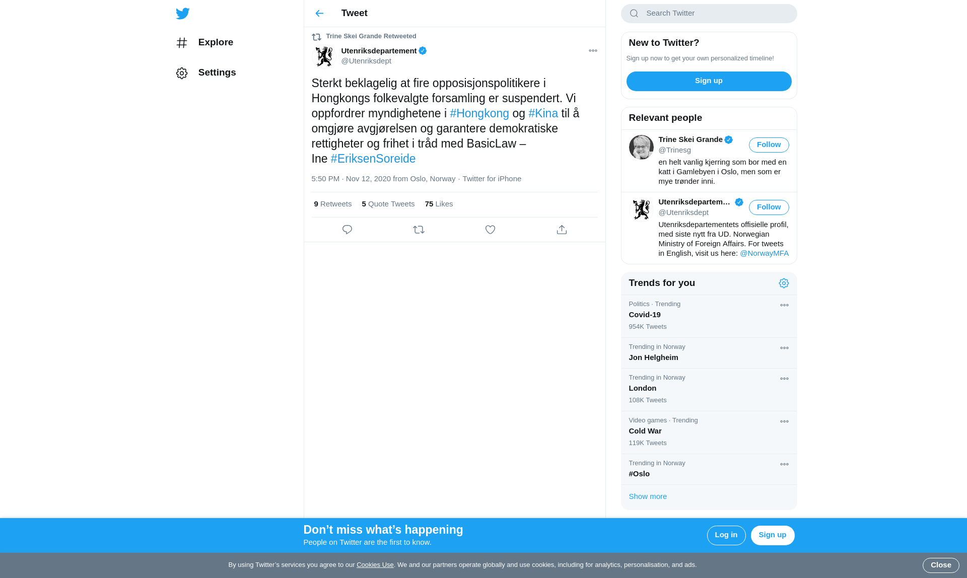 RT @Utenriksdept: Sterkt beklagelig at fire opposisjonspolitikere i Hongkongs folkevalgte forsamling er suspendert. Vi oppfordrer myndighetene i #Hongkong og #Kina til å omgjøre avgjørelsen og garantere demokratiske rettigheter og frihet i tråd med BasicLaw –